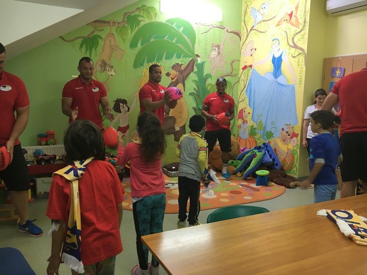Sportivii le-au spus micutilor bolnavi ca si ei se accidenteaza adeseori la meciuri sau antrenamente, dar de fiecare data se ridica si lupta mai departe pentru ca doar asa pot fi campioni, ceea ce trebuie si ei sa faca, sa tina piept bolii, sa-i asculte pe doctori si sa se vindece, pentru ca apoi au un loc asigurat in tribune la partidele Timisoara Saracens.