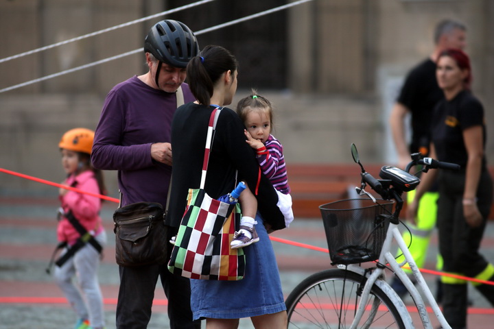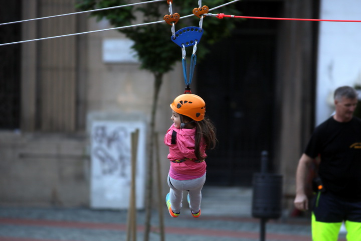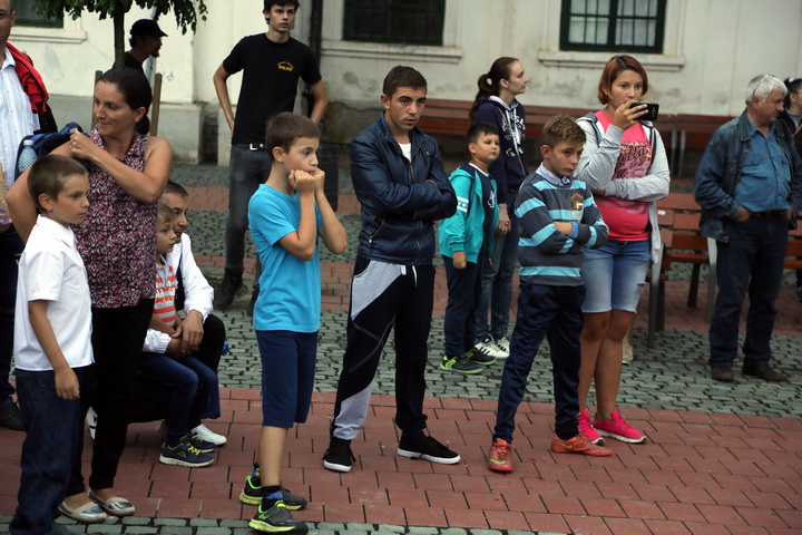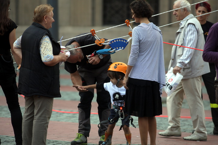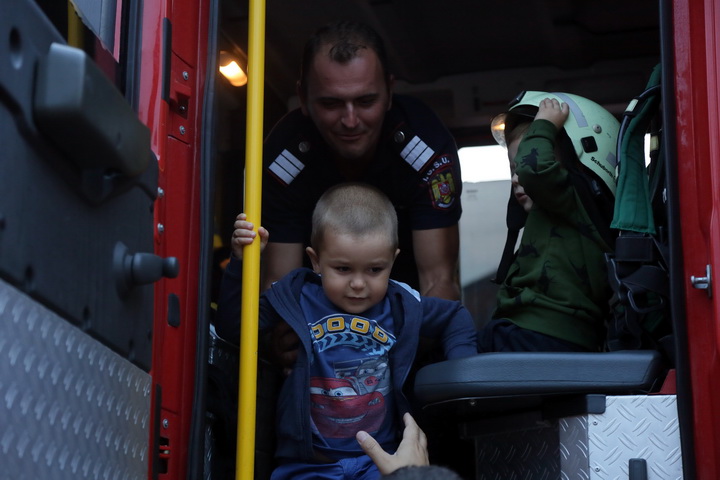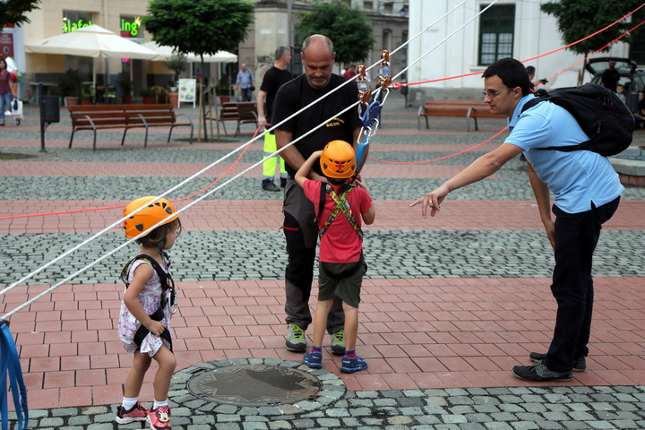 La demonstratie au participat si reprezentantii SALVO, care i-au ajutat pe copii sa se dea pe tiroliana si le-au facut o demonstratie de dresaj canin.