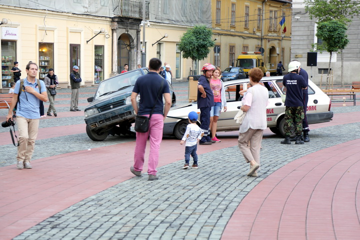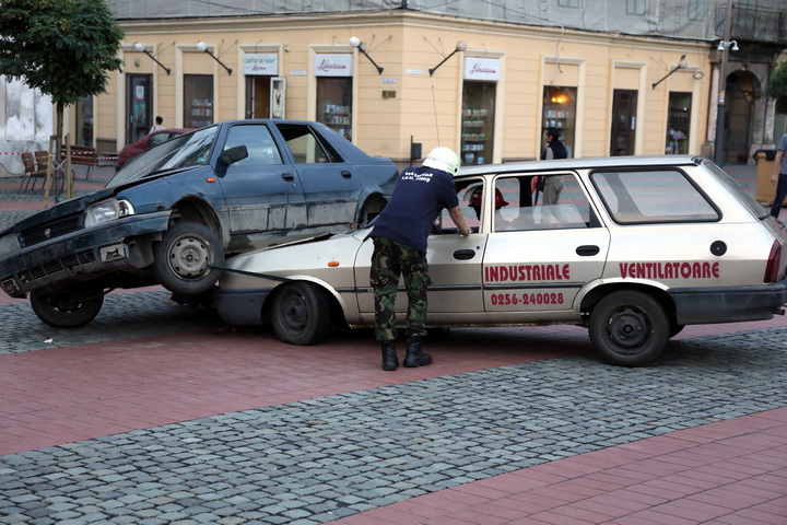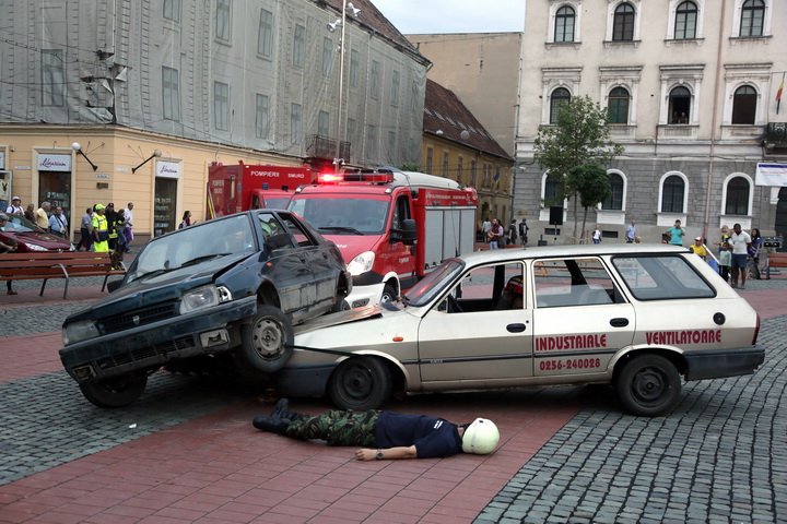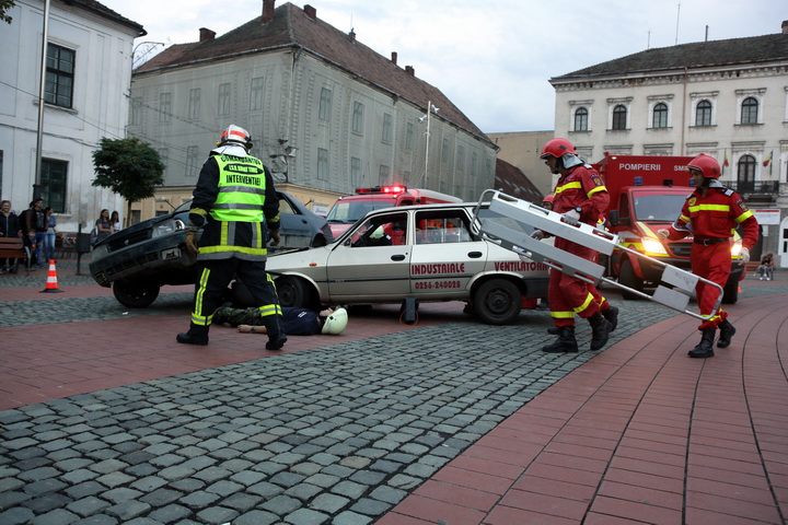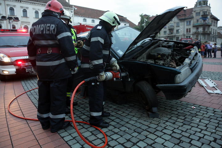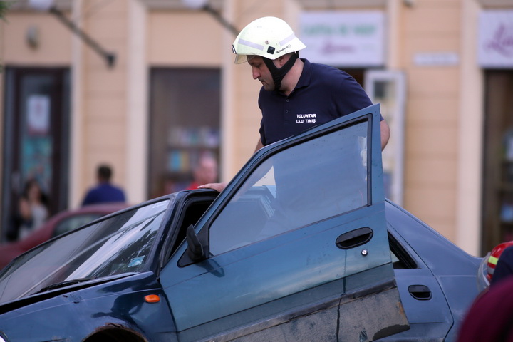 Pompierii le-au aratat timisorenilor cum actioneaza atunci cand are loc un accident rutier in care soferii raman incarcerati intre fiarele masinilor.