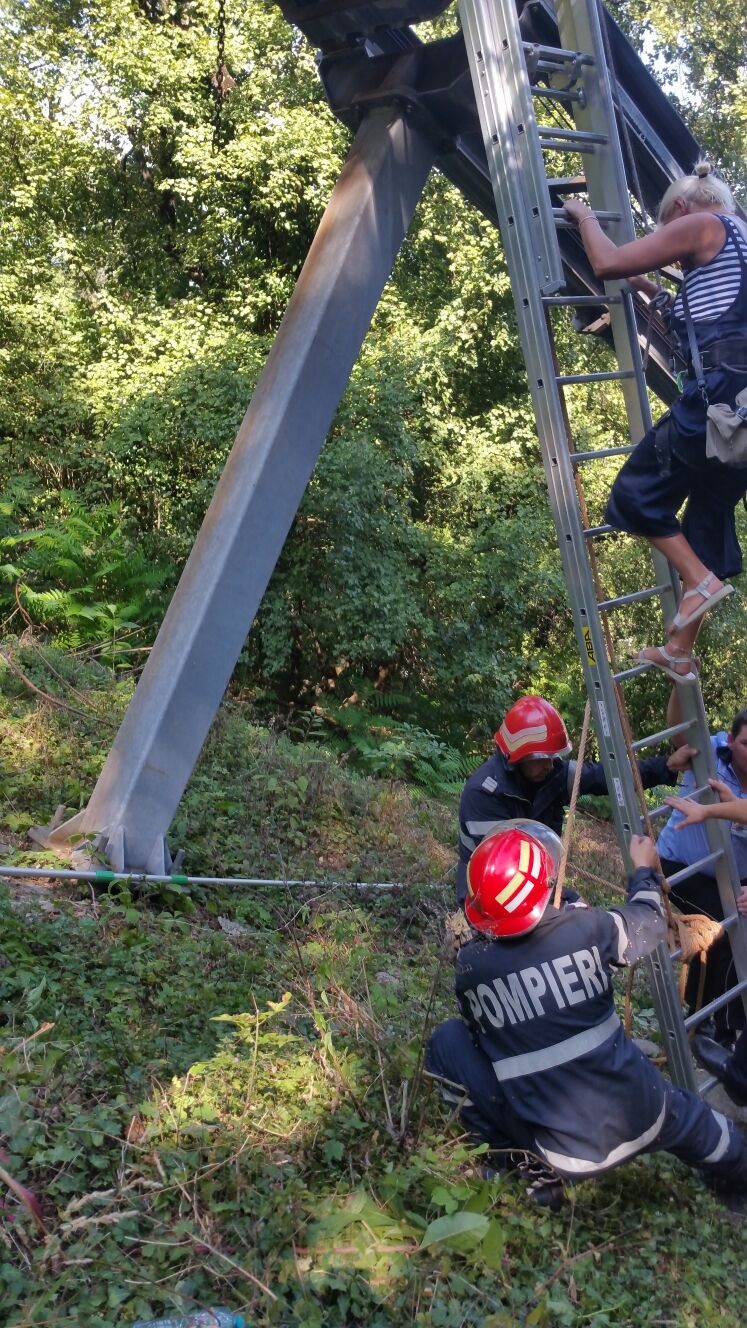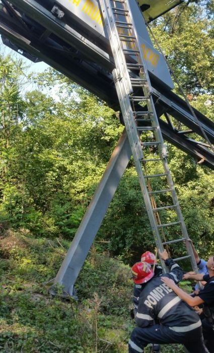 “Din cauza terenului accidentat, operatiunea s-a desfasurat destul de dificil. In telecabina se aflau 17 turisti, dintre care doi copii de 6 si 7 ani, 9 femei si 6 barbati. Doua echipaje din Deva au actionat cu o scara culisabila pentru coborarea in siguranta a turistilor aflati in telecabina blocata la aproximativ 8 metri de sol”, au transmis reprezentantii ISU Hunedoara.