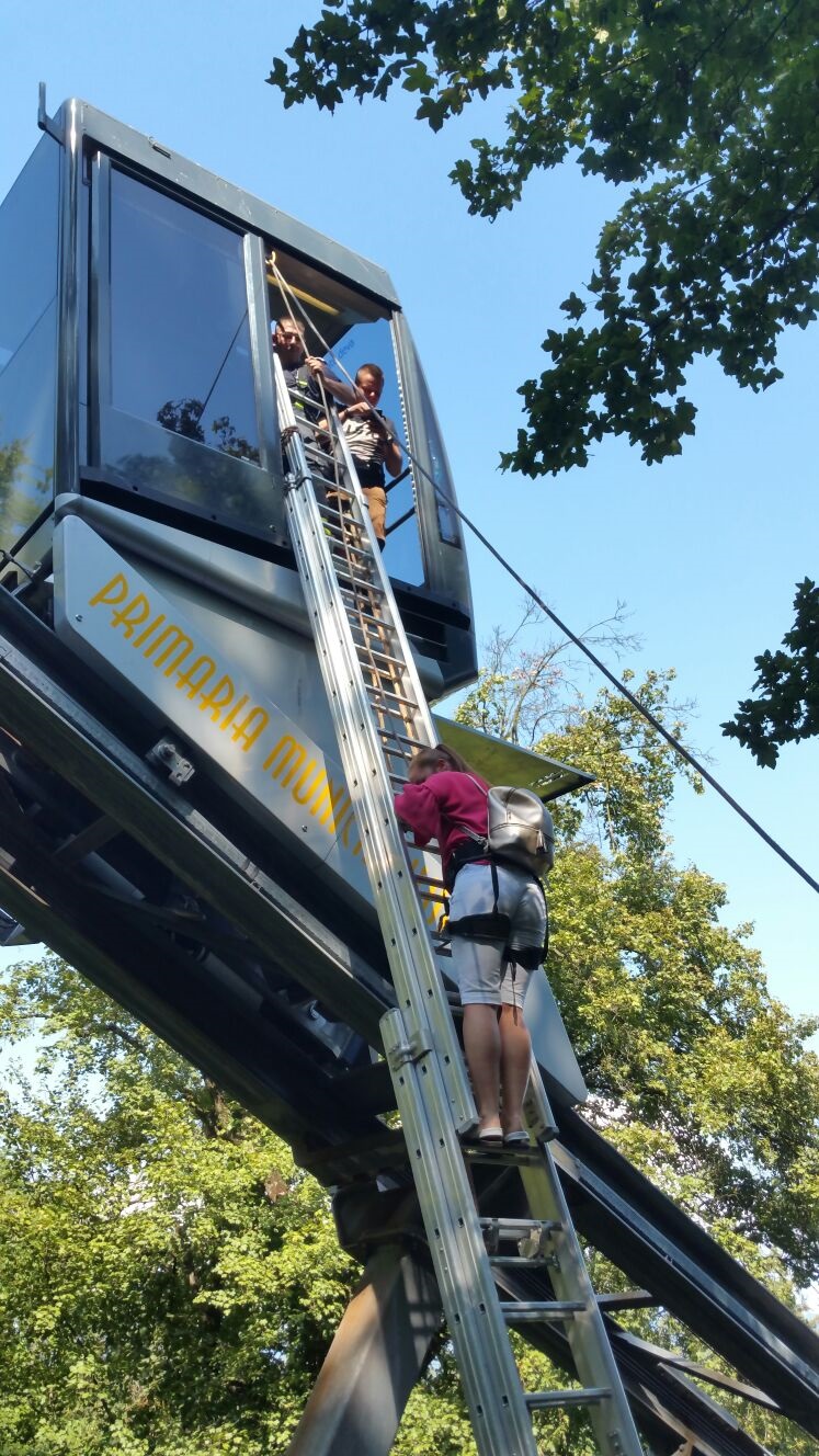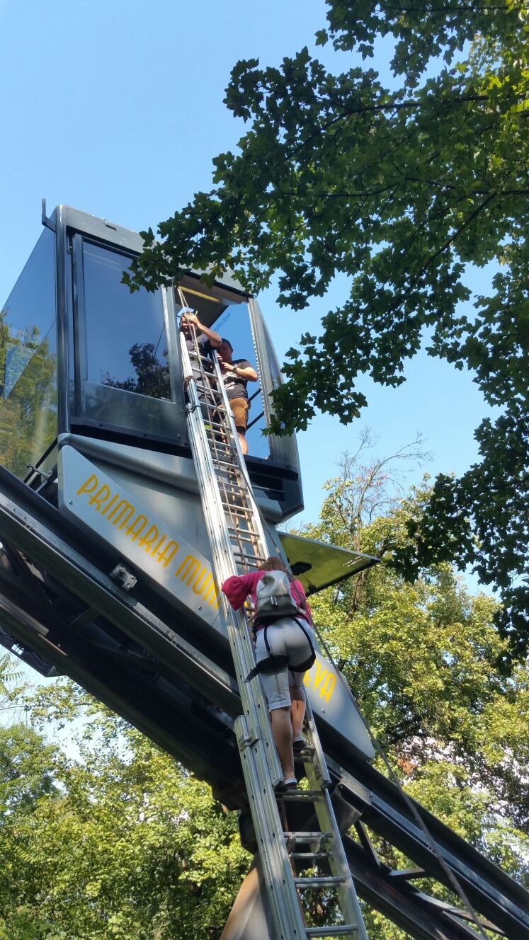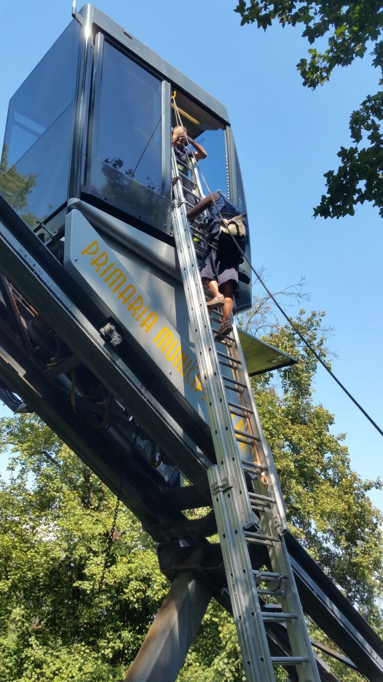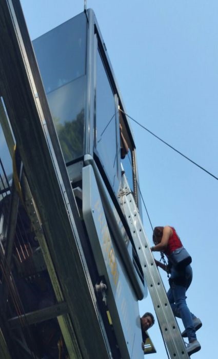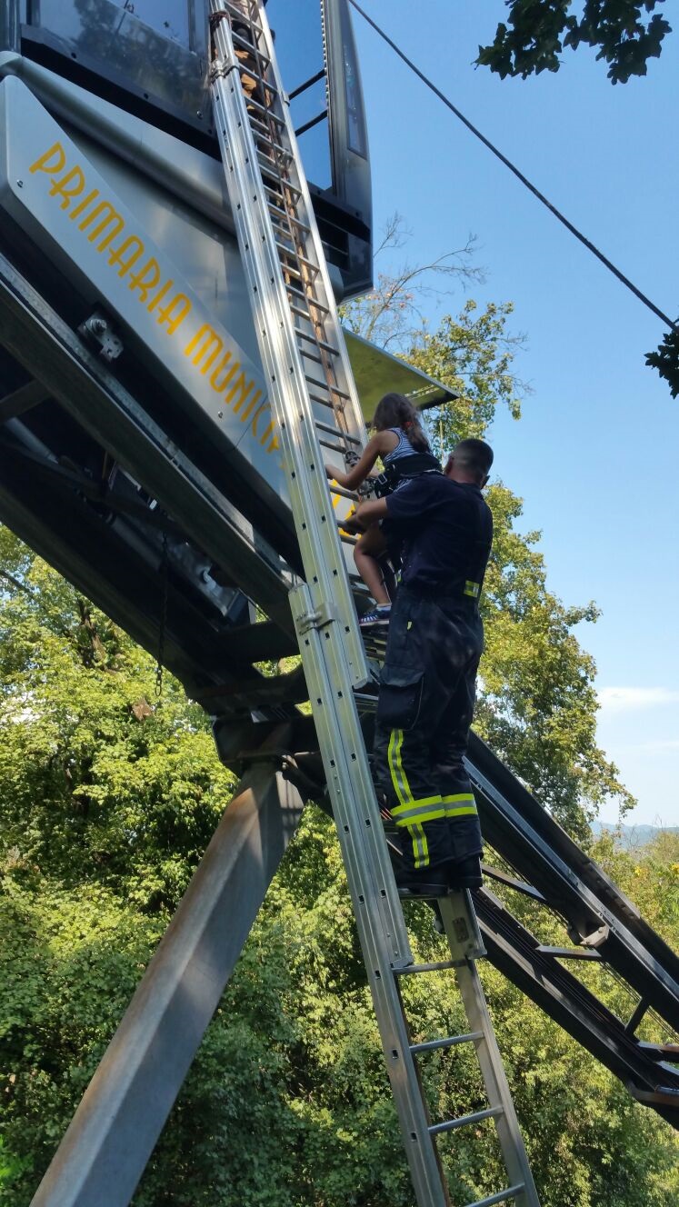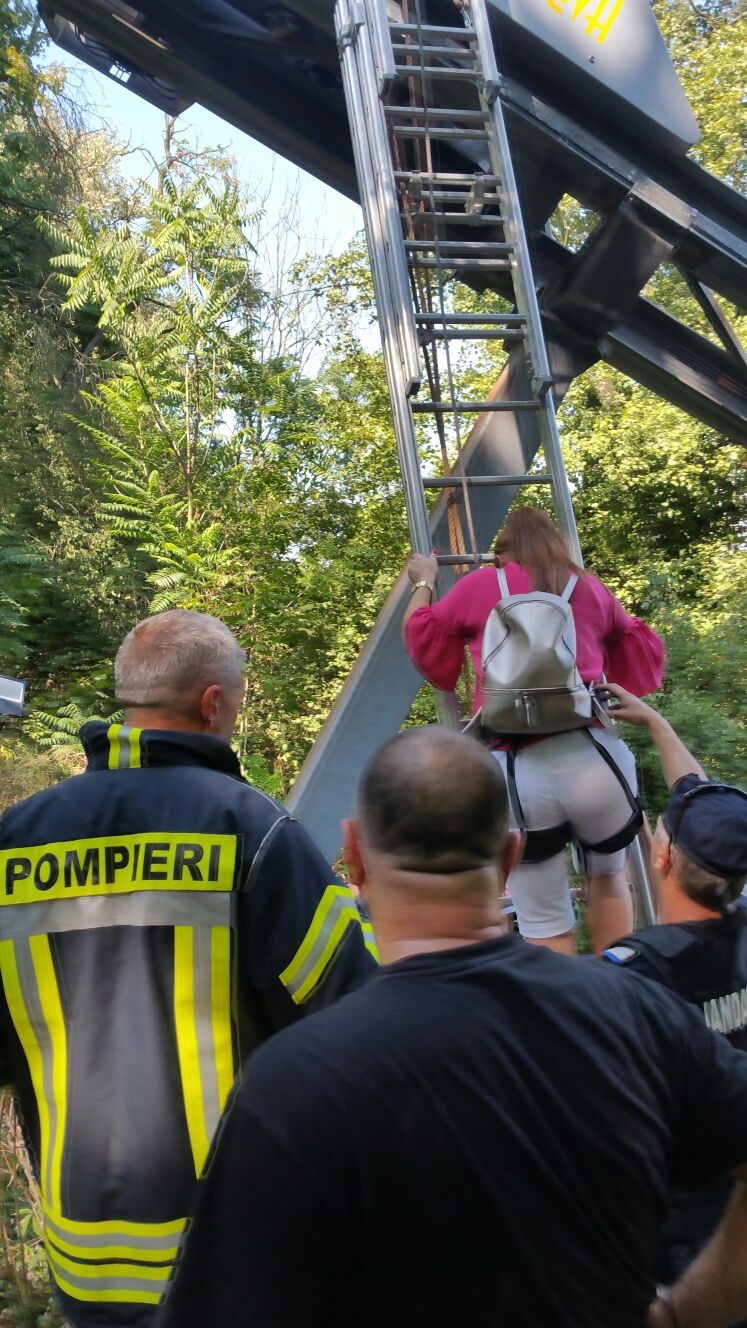 17 turisti au ramas blocati in telecabina de pe Dealul Cetatii din Deva, din cauza unei defectiuni. A fost nevoie de interventia pompierilor, care au coborat, rand pe rand, pe o scara, toti turistii din telecabina.