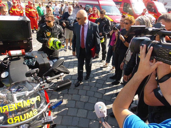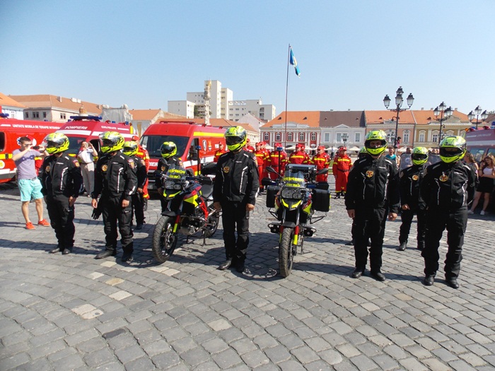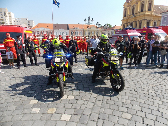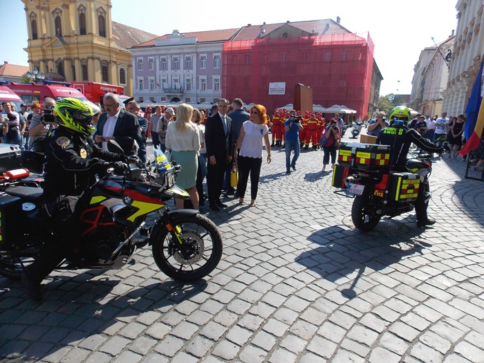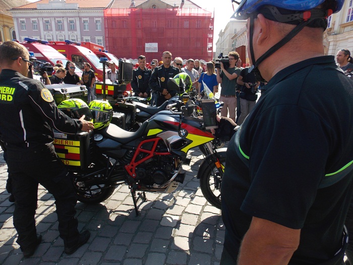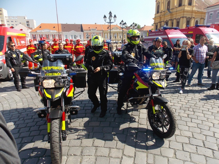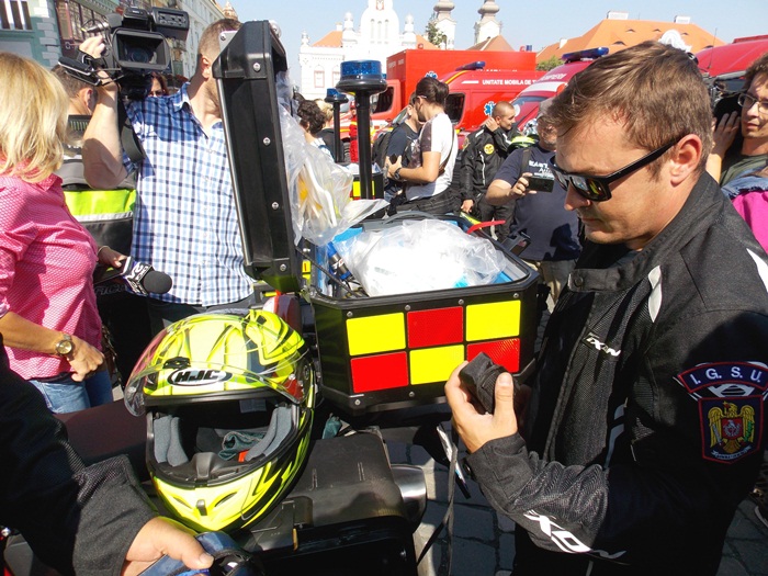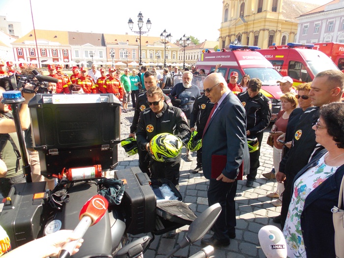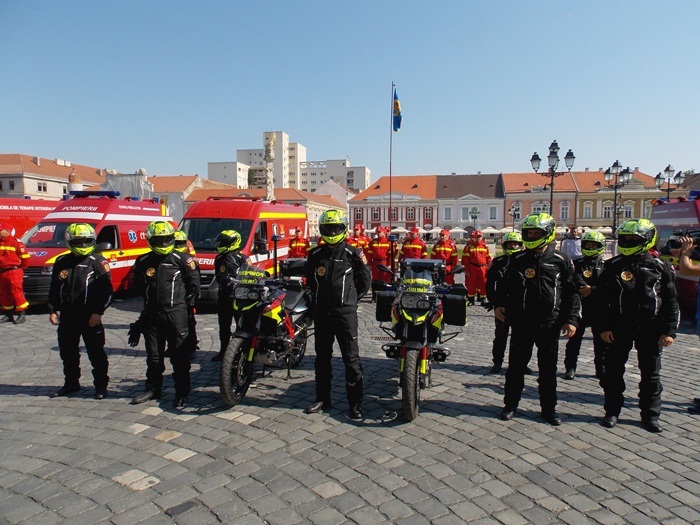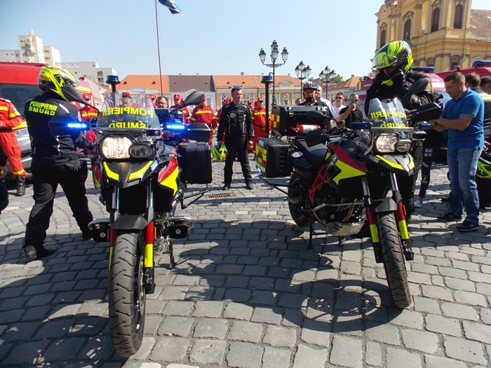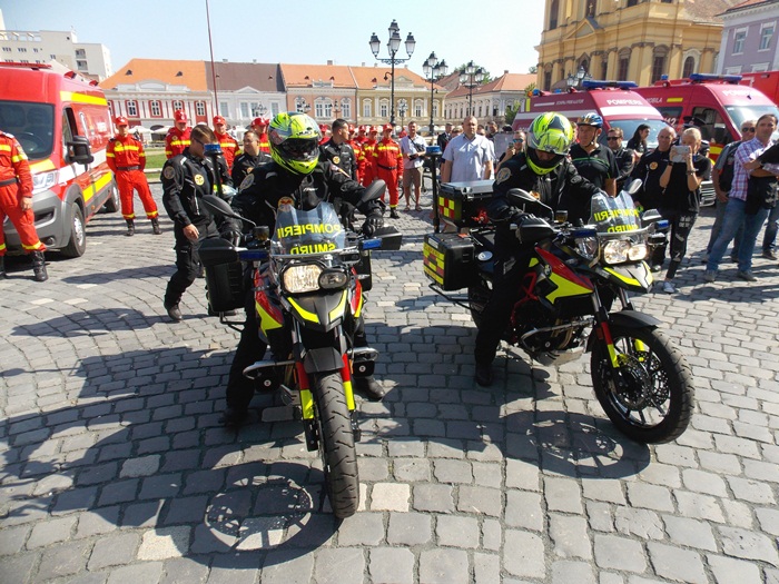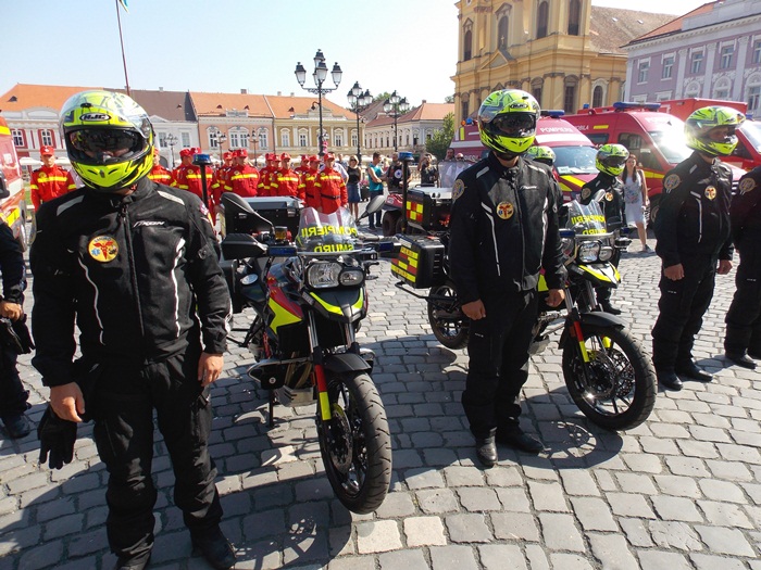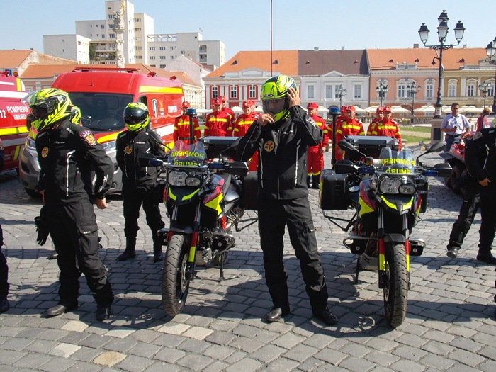 Pentru conducerea celor doua motociclete ISU Timis a pregatit 10 oameni, atat din punct de vedere medical, cat si tehnic.