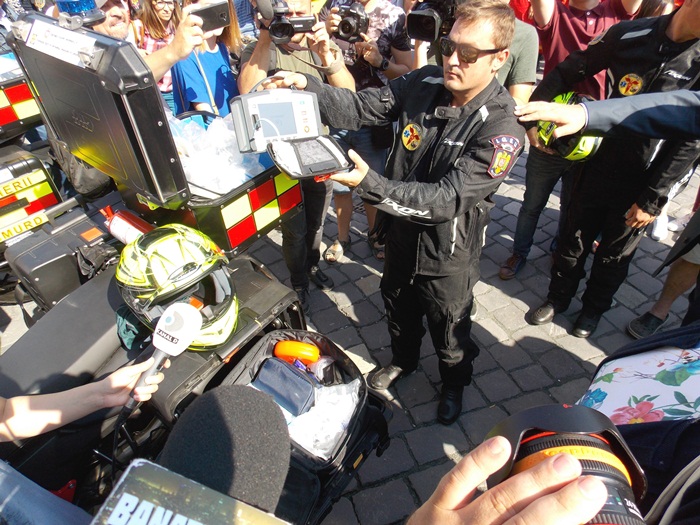 “Eu pot sa va spun ca motocicletele care sunt la Bucuresti, la Constanta si la Cluj, cumulat, au deja peste 10.000 de interventii din datele pe care le avem in anii in care au lucrat. Povesti de cazuri care au fost salvate de catre paramedicii de pe motociclete pana au ajuns echipele de interventie sunt multe. Si una din povestile pe care le cunoastem este un stop cardiac intr-o garnitura de tren care era in Gara de Nord. Motociclistul, primul sosit, a intrat cu motocileta in gara pana la peron, a aplicat socurile, cand a ajuns echipajul medical dupa el, pacientul deja avea ritmul cardiac stabilit“, a declarat Raed Arafat.