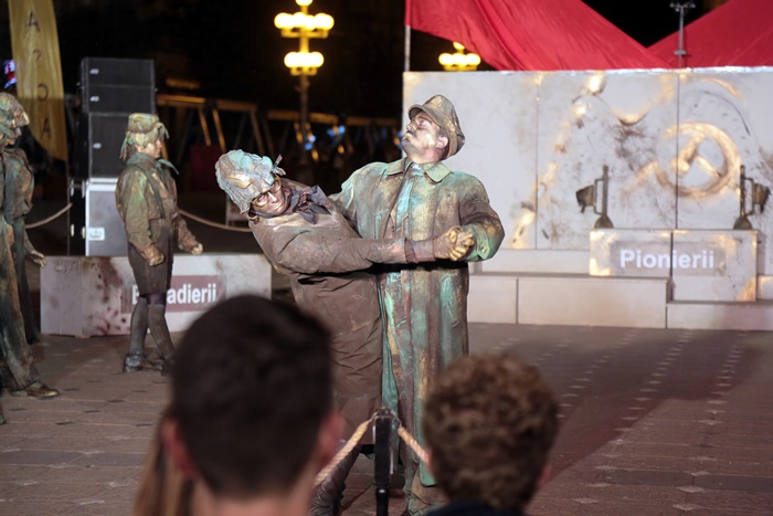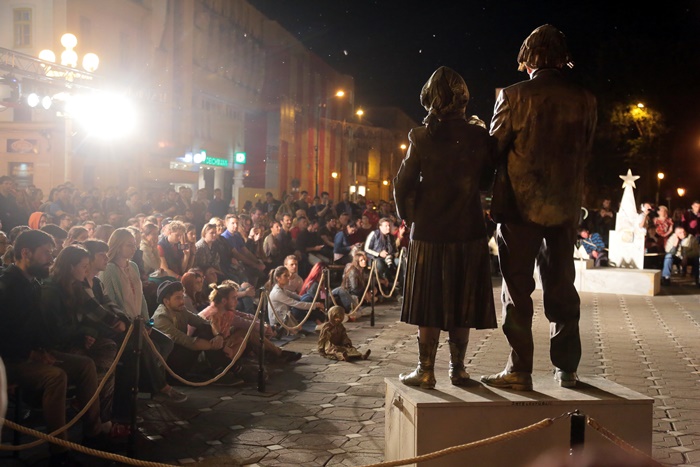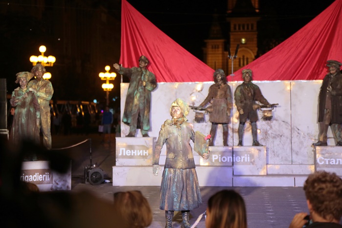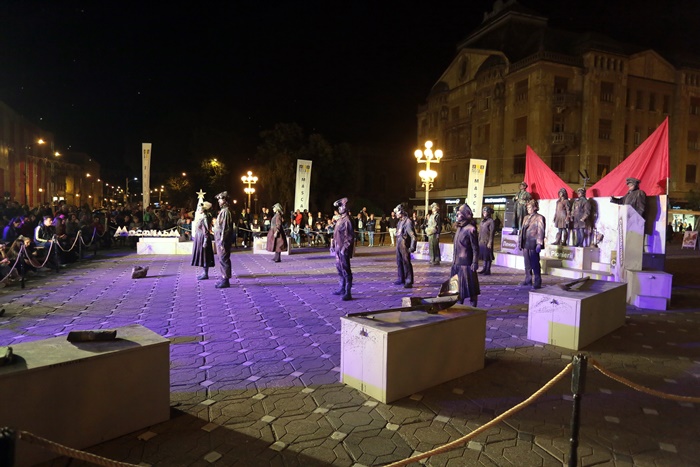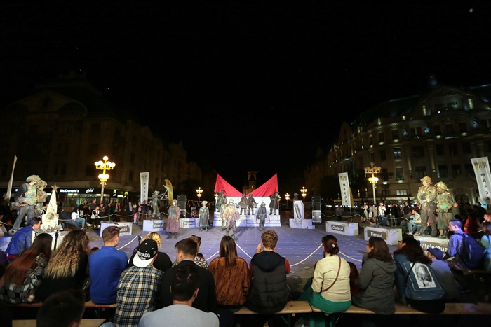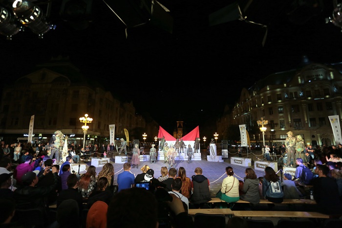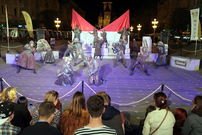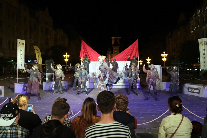 TIMISOARA. O multime de timisoreni s-au adunat luni seara tarziu in centrul orasului dornici sa se bucure de o noua reprezentatie din cadrul Festivalului European al Spectacolului – Festival al Dramaturgiei Romanesti, FEST-FDR2017.