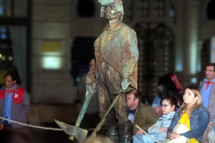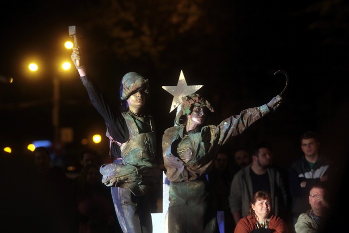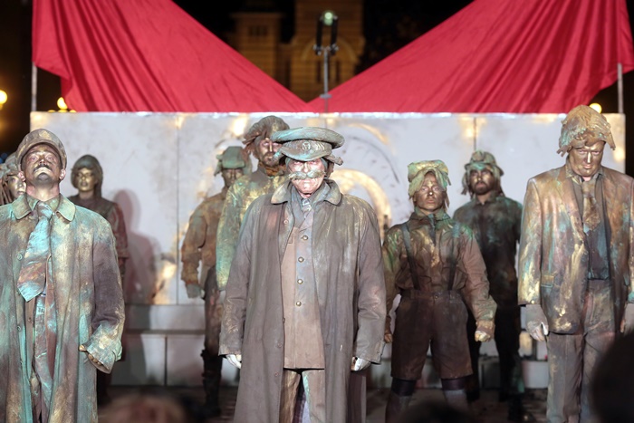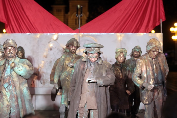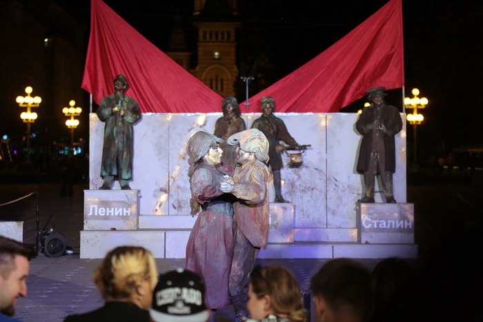 Arca lui Lenin, un spectacol despre lumea comunismului in perioada stalinista, o lume recreata din imaginile unor statui celebre care au facut gloria proletcultismului, filozofala, culturala si morala a acelor vremi, a fost bine primit de public.