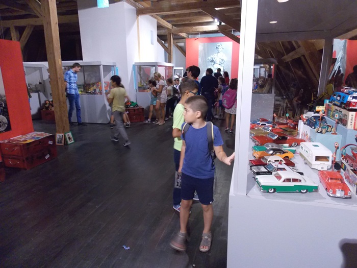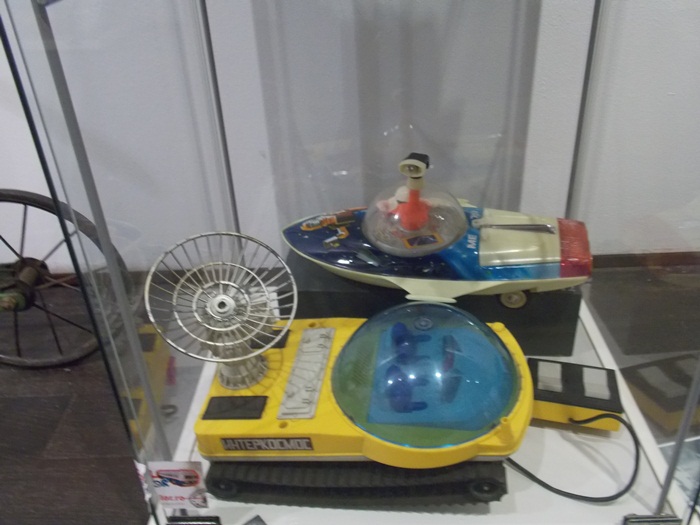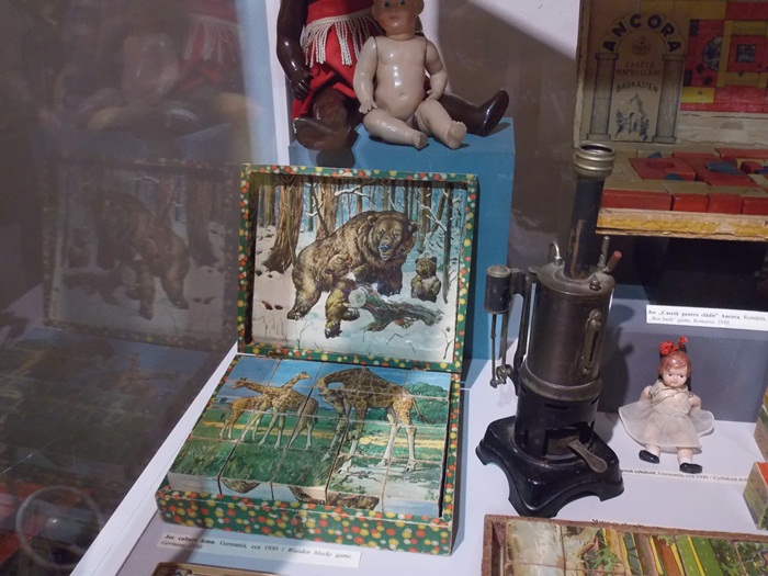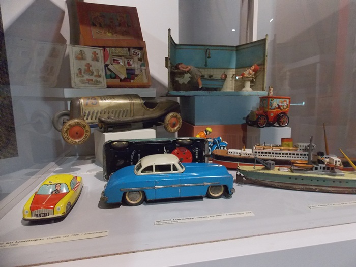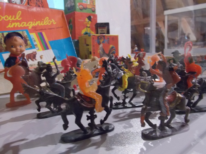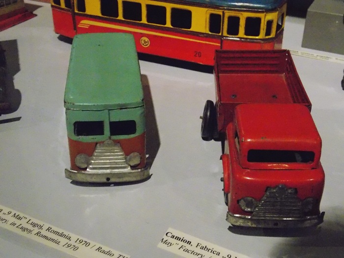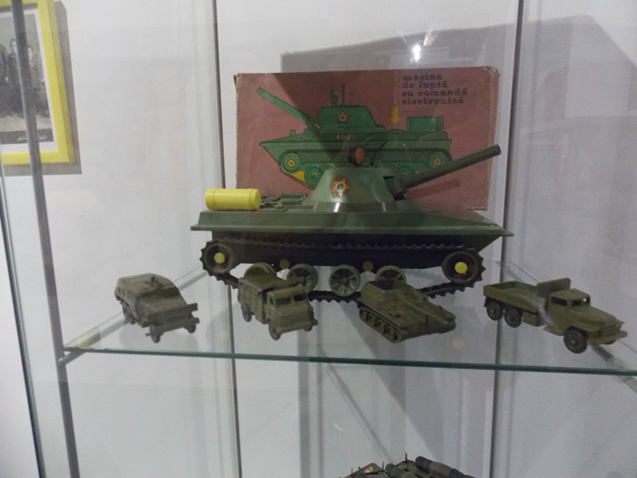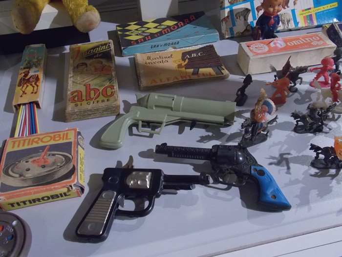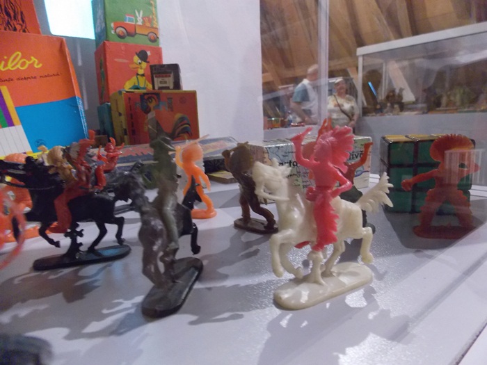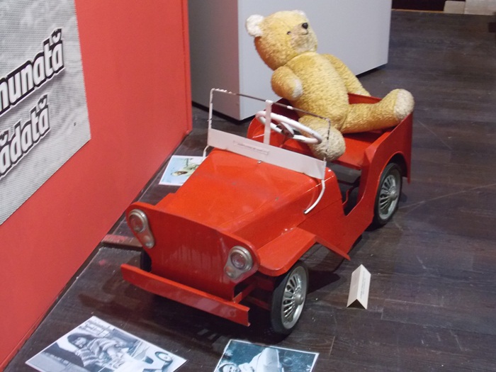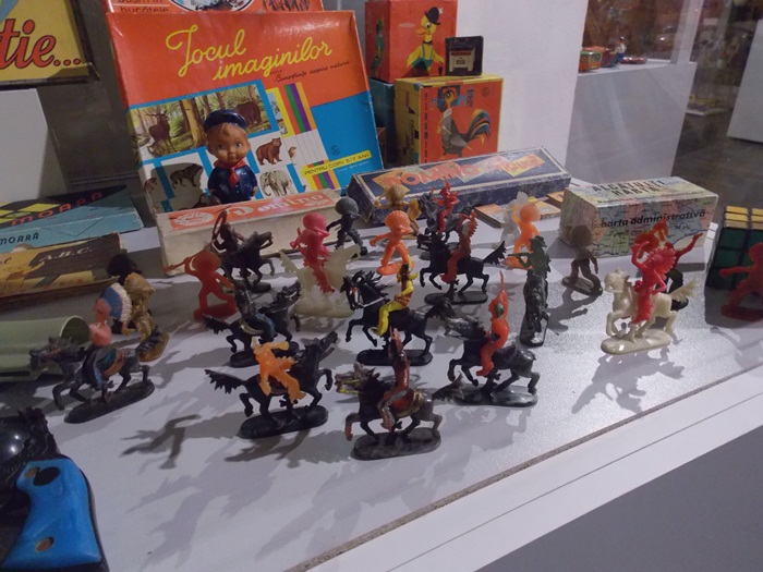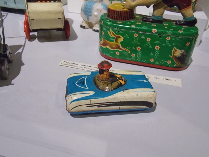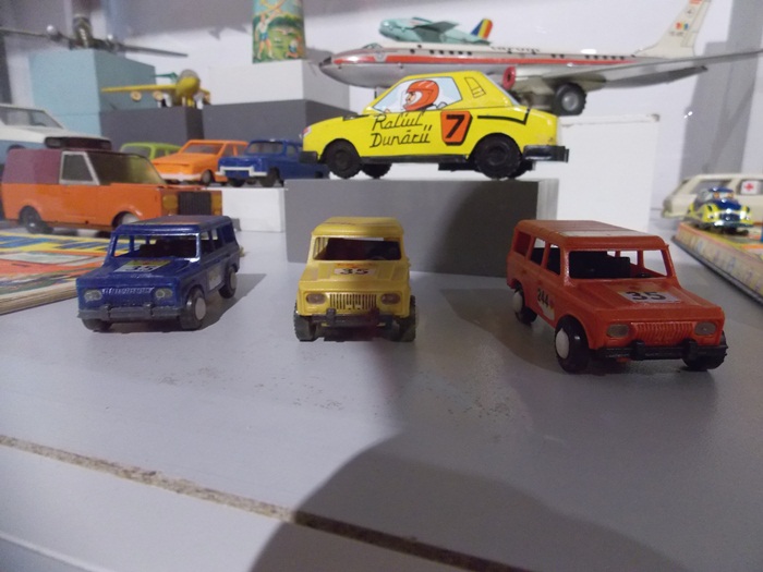 Printre vedetele expozitiei se afla o masina de ‘militie’, un carucior cu papusi, calutii sub forma de balansoar sau o trotineta, toate produse in Romania.