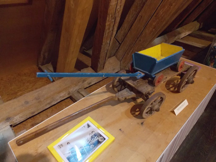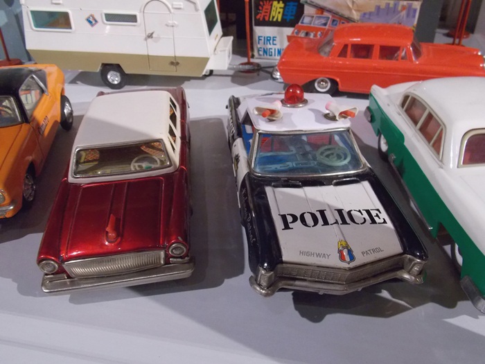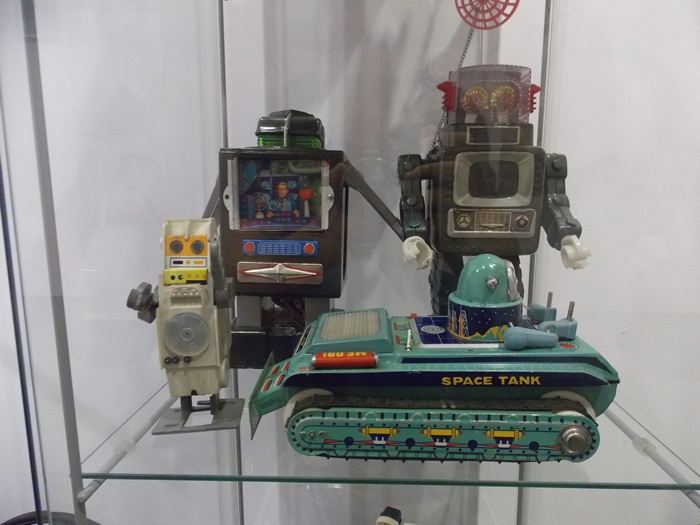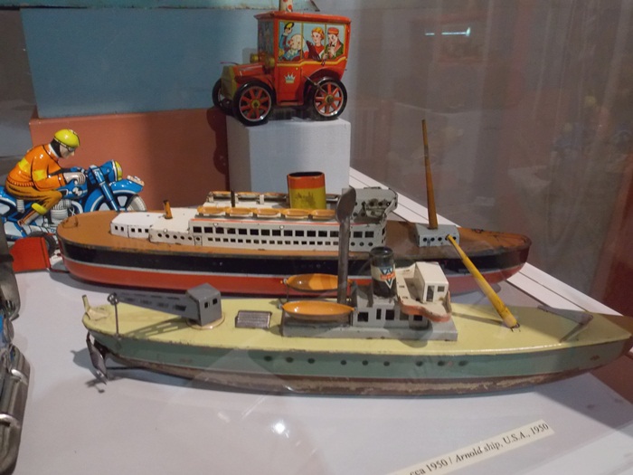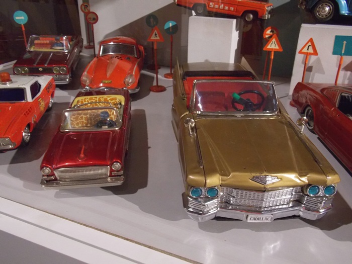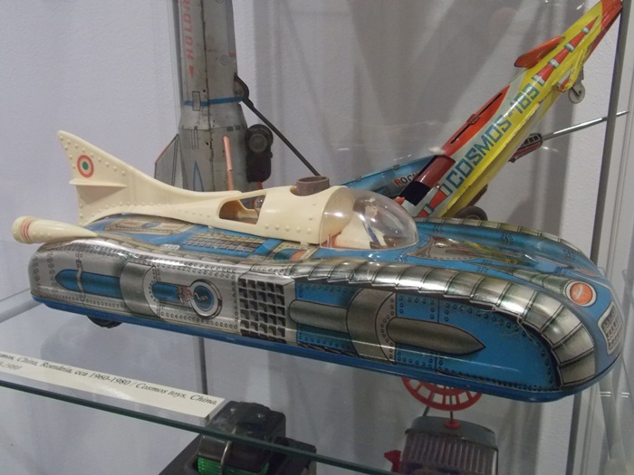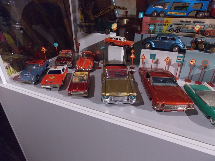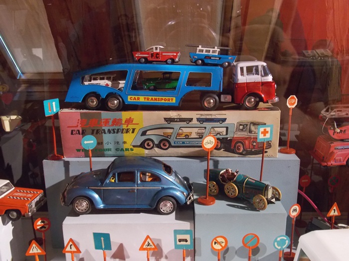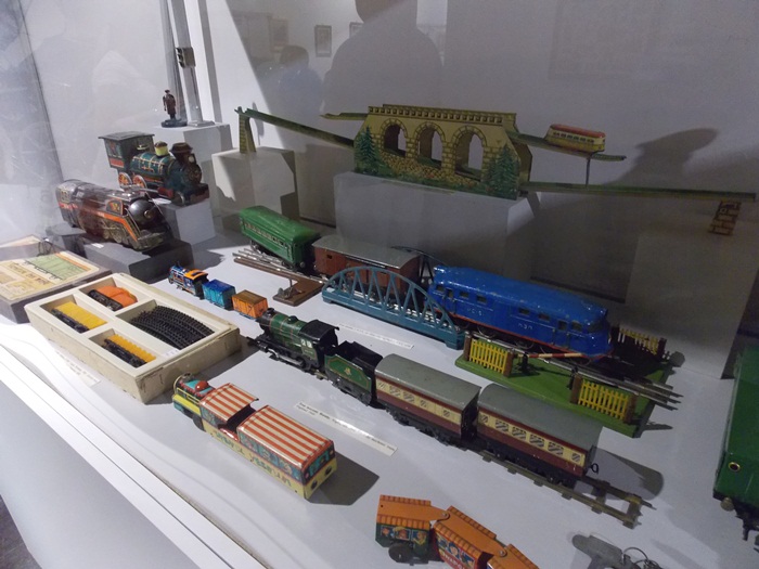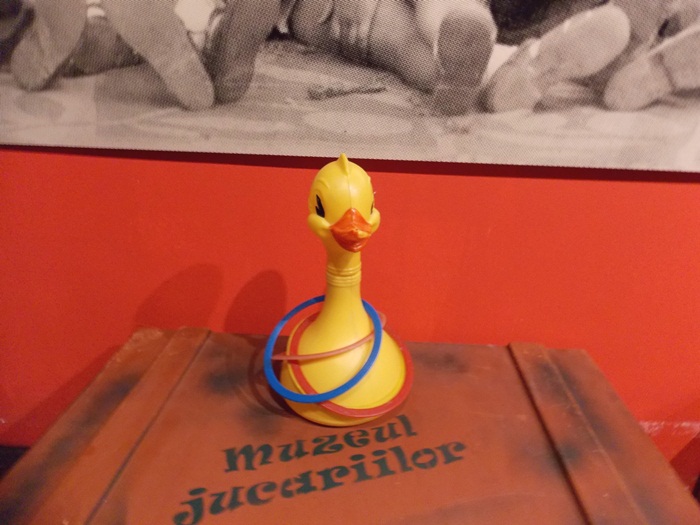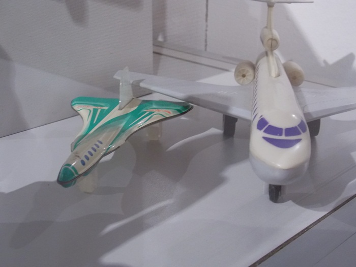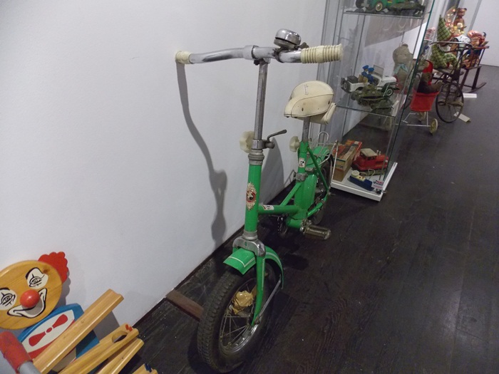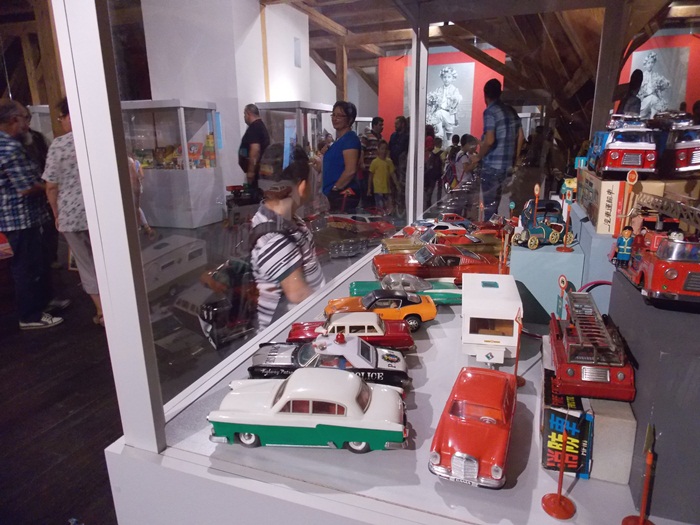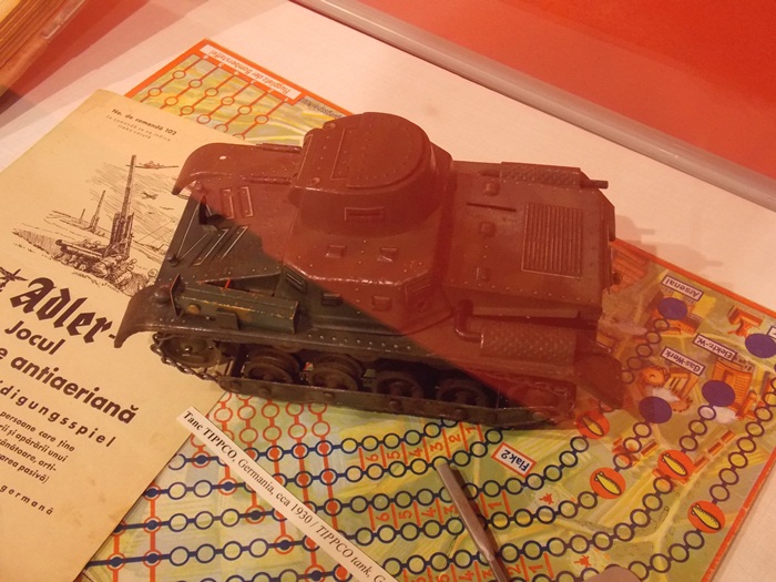 Printre vedetele expozitiei se afla o masina de ‘militie’, un carucior cu papusi, calutii sub forma de balansoar sau o trotineta, toate produse in Romania.