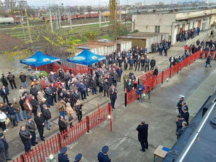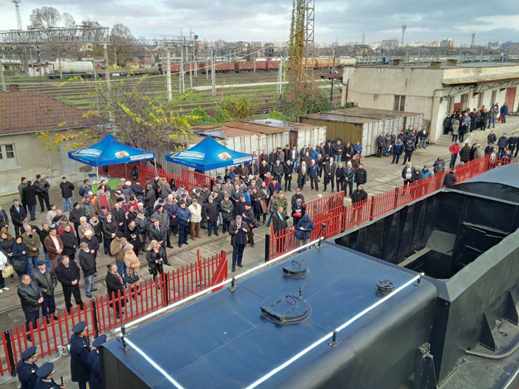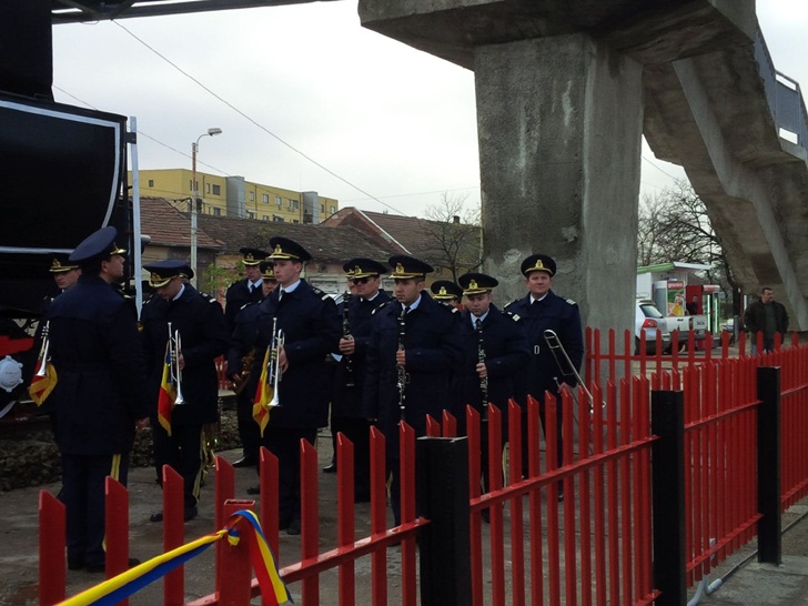 A avut loc un ceremonial, in prezenta mai multor timisoreni curiosi veniti sa admire chipesa piesa de patrimoniu care va infrumuseta de acum inainte statia feroviara principala a Timisoarei.