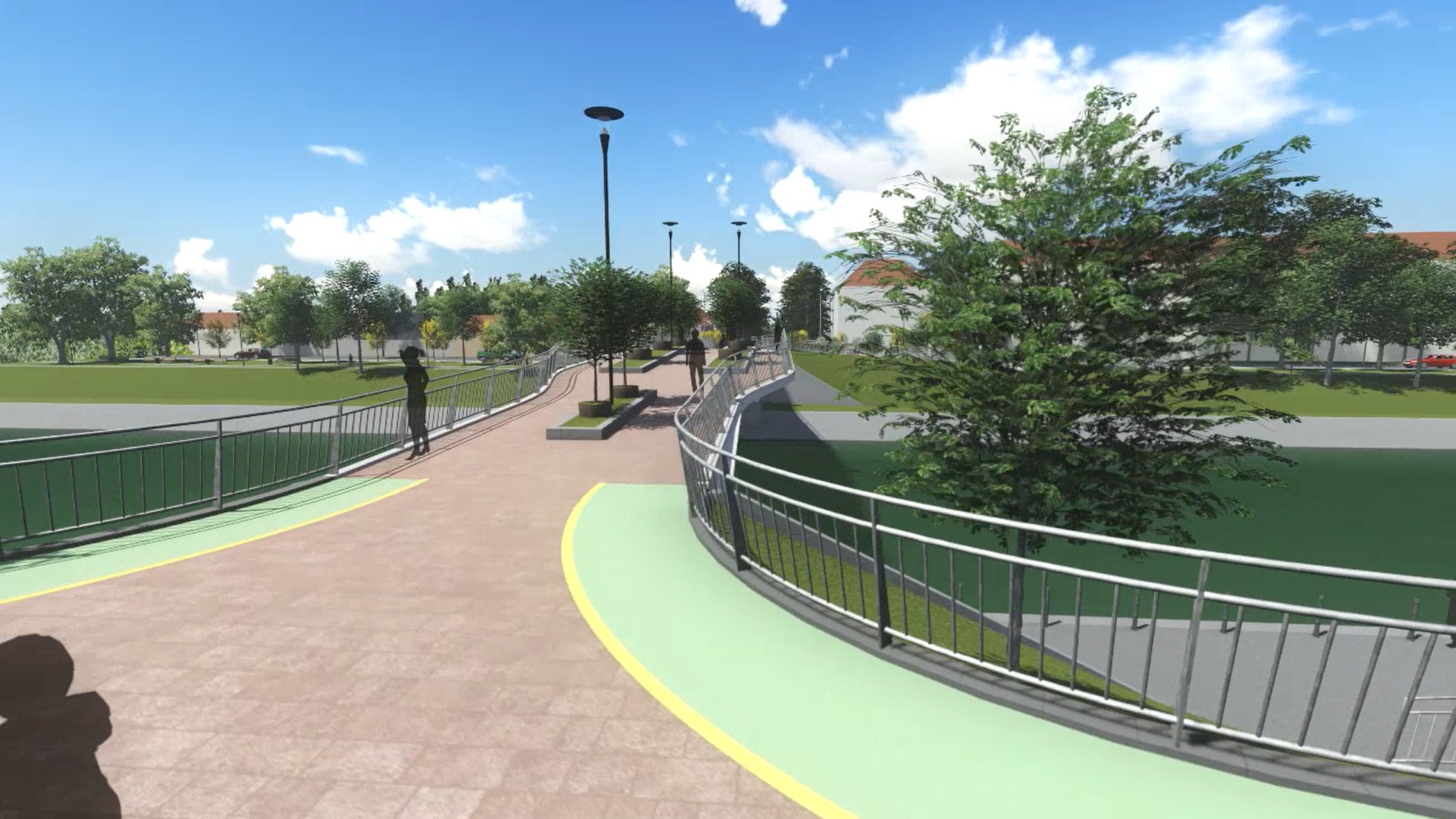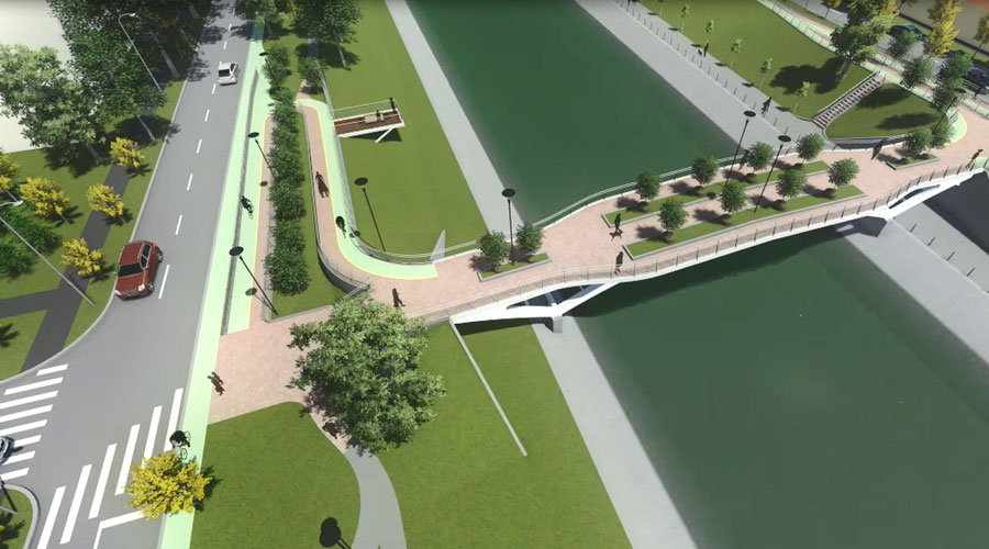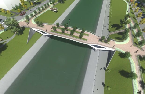 Iata si cum ar trebui sa arate Pasarela Gelu – Crizantemelor in 27 aprilie, ultimul termen fixat pentru finalizarea investitiei care sa asigure conexiunea, peste Bega, intre cartierele Dambovita si Iosefin, pietonal sau cu bicicleta.