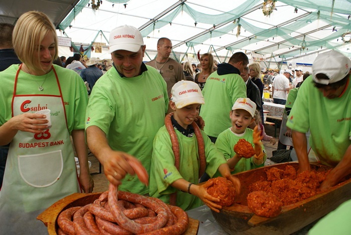 Carnatul din Csaba este un „hungarikum” celebru si pe plan international, un produs alimentar protejat de Uniunea Europeana cu indicatie geografica, acest product poate fi cumparat in timpul festivalului de la mai multi producatori din tara.