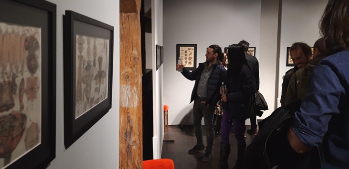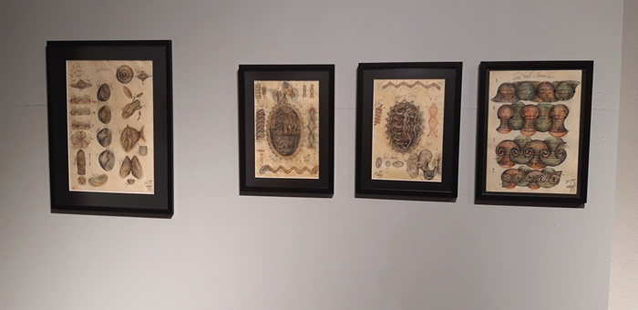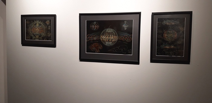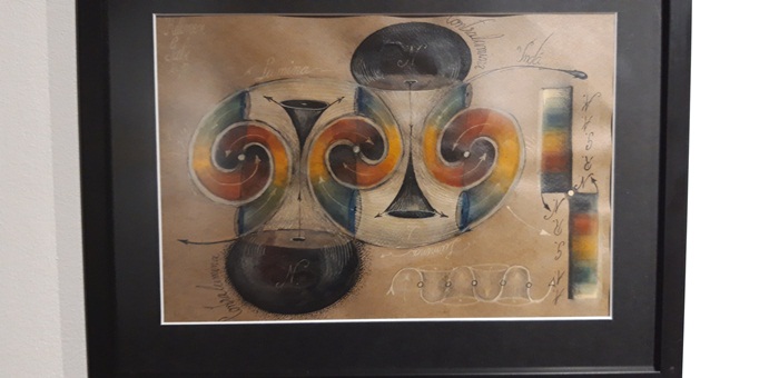 “Este, cum s-a spus, partea de dinaintea teoriei, universalitatea principiului sfera-spirala sau sfera-vortex care am dezvoltat-o timp de 20 de ani. Asta inseamna ca sfera se manifesta si devine vortex sau spirala. Se refera la arhetipurile lui Platon sau Aristotel. Ceea ce vedeti este o impartire in 2 lumi. Este partea dinaintea descoperirii acestei teorii, dinaintea posibilitatii mele de a structura. Eu am lucrat cu microscopul, am facut foarte multe experimente, tot am incercat sa gasesc numitorul comun, asta a fost obsesia, sa spunem, a mea. Se intelege, ca sculptor cautam originea formei, care este forma mama, matricea din care deriva tot. Si mi-am dat seama treptat ca universul inseamna o abundenta de sfere, ma refer la planete, galaxii, si asa mai departe, in mod evindent. Nu cuburi, nu tetraedre, nu alte corpuri geometrice foarte posibile. Si atunci am zis ca astea inseamna ceva. M-am apucat sa studiez undele stationare cu Alexandra Titu, care m-a ajutat foarte mult, si incet incet aceste unde mi-au creat un limbaj comun in care am putut sa leg arhetipurile microcosmosului cu macrocosmosul. Cam asta este ce se intampla in aceasta teorie. Referitor la expozitie, este partea dinainte acestei descoperiri, o vedeti aici in partea din fata, iar in partea din spate este ceea ce urmeaza sa fie condensat pe 600 de planse. Am trecut de la 90, la 120, am ajuns la 300 si lucrez pentru 600. Ele nu sunt inca sistematizate, urmaresc planetele,sistemele galactice, intr-o cheie poetica, estetica, stiintifica si mistica, deci combina fiecare plansa 3 elemente… Mi-am dorit sa devin biochimist, dar am facuit altceva. Tot timpul am lucrat la microscop si m-am inspirat de acolo, cate 9-10 ore pe zi, desenam lucrurile cu care ramaneam. Am obtinut chipuri umane prin stimulare acustica in fluide“, a spus pentru opiniatimisoarei.ro, Gabriel Kelemen.