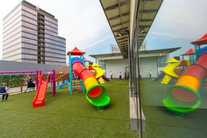 Ansamblul Iulius Town, singurul proiect mixt din vestul ţării, include, din această toamnă, prima grădiniţă din oraş cu predare exclusiv în limba engleză, dar și o școală primară cu predare în limba română.