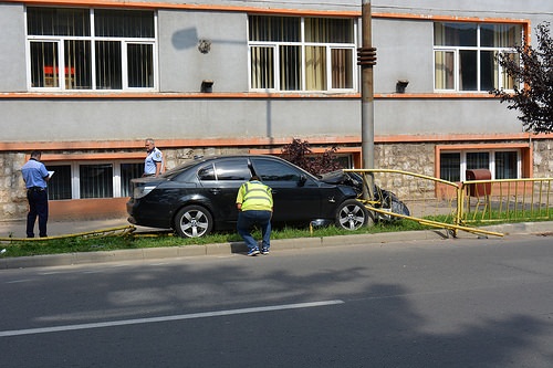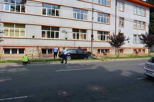 Accident duminica la amiaza, dupa ce un sofer si-a scapat bolidul de sub control. A izbit un stalp de pe marginea drumului si a facut praf un gard de protectie, pe un bulevard circulat. Se pare ca acesta a incercat sa evite impactul cu un alt autoturism si a facut o manevra brusca.