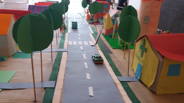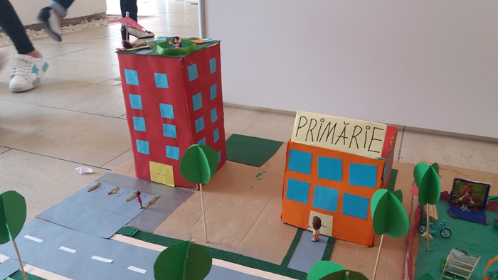 Pe celelalte machete au fost puse cladiri imaginate sub diferite marimi, forme sau culori, insa cei mici au insistat mult si pe detalii. Elevii au creat sensuri giratorii, fantani arteziene sau animale inchise in custi la gradina zoologica.
