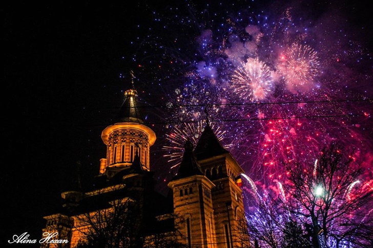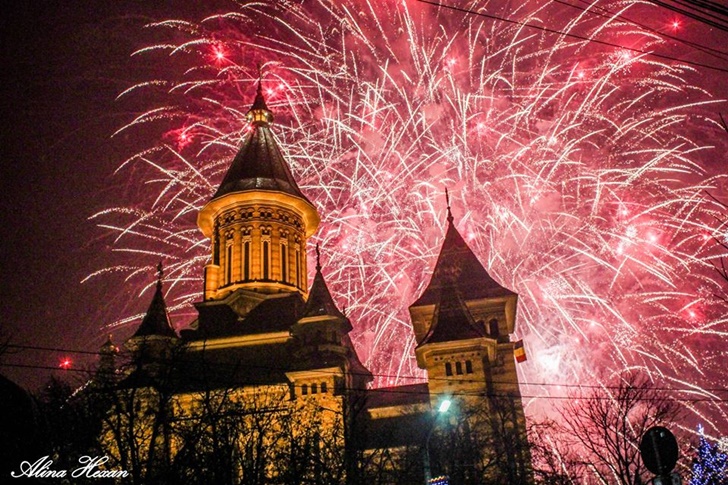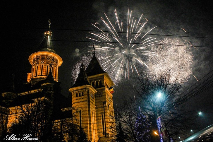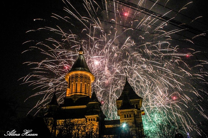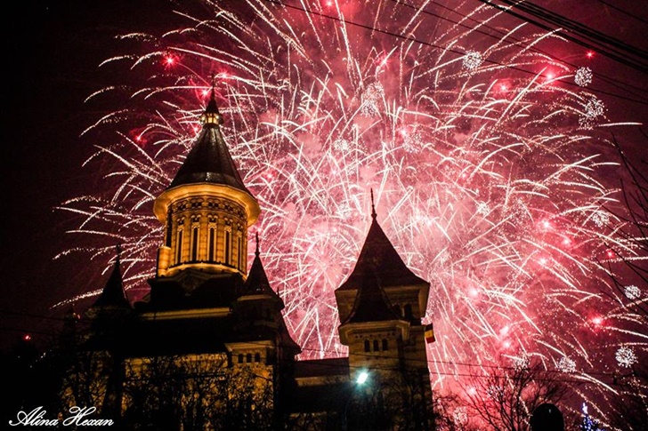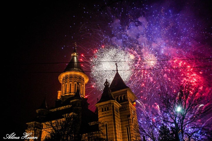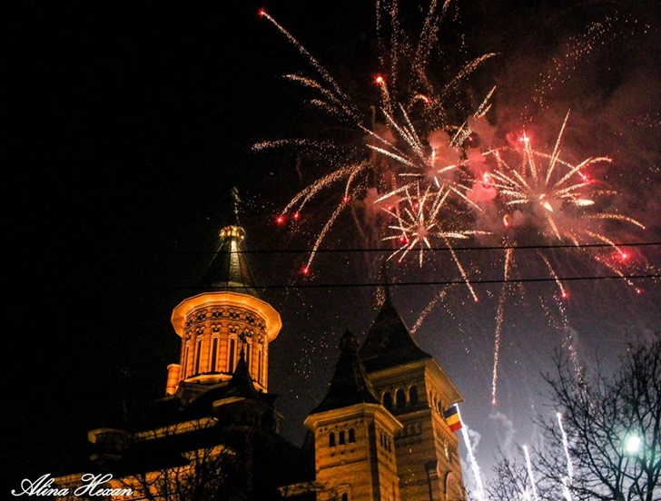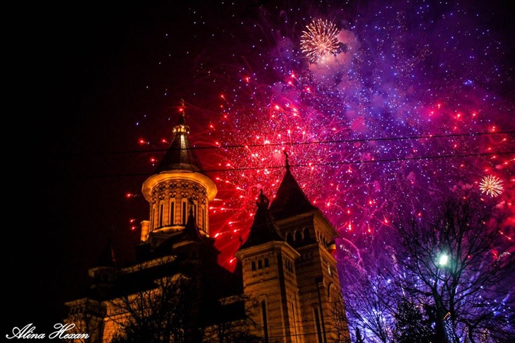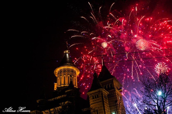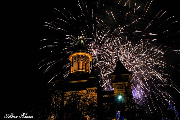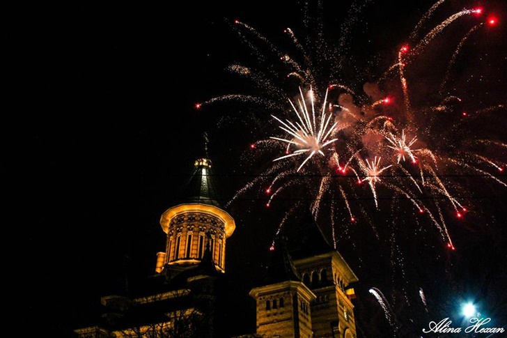TIMISOARA. Jocul de artificii care a brazdat cerul Timisoarei la trecerea in noul an a fost o incantare pentru timisorenii care s-au aflat la ora 0.00 a lui 2017 in Piata Victoriei.