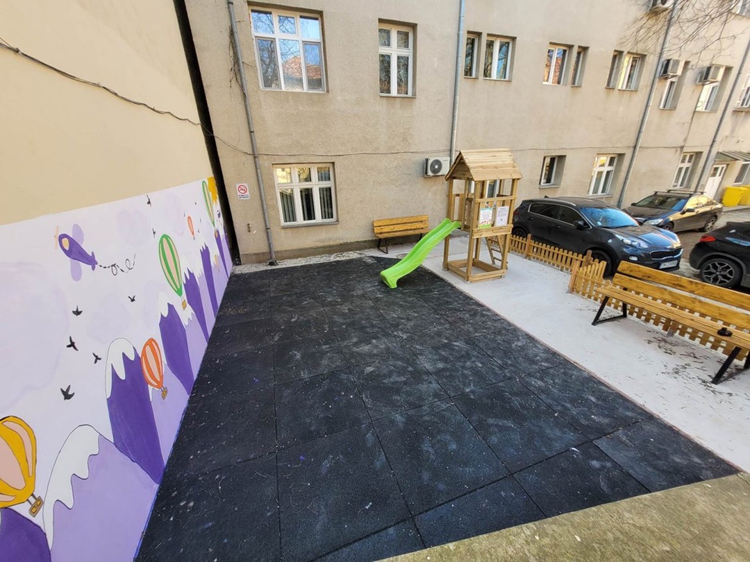 Interventiile au presupus decopertarea unui strat de pamant de aproape 50 centimetri, realizarea unui substrat din piatra concasata si pietris pentru dalele de tartan montate, construirea unui turn de joaca, dar si amenajari estetice si lucrari la zidurile ce inconjoara spatiul.Au fost reabilitate bancile din locul de joaca, oferind parintilor micutilor internati posibilitatea de a-i supraveghea pe acestia, dar au fost montate si panouri informative si a fost realizata o zona de joaca pentru cei mai mici copii“, transmit reprezentantii Asociatiei Druckeria.