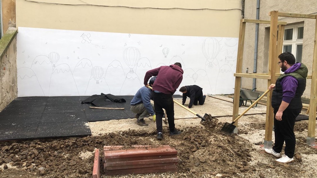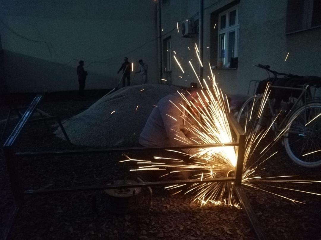 Lucrarile au fost facute de 20 de voluntari din Druckeria, Peluza Sud Timisoara si membri ai comunitatii online Tatici mai tari ca MMTCG. Asociatia a platit pentru realizarea spatiului suma de 8500 lei, in realitate costul total al lucrarilor ridicandu-se la aproximativ 20.000 lei, restul finantarii fiind acoperita din donatii si sponsorizari provenite de la persoane fizice si juridice.