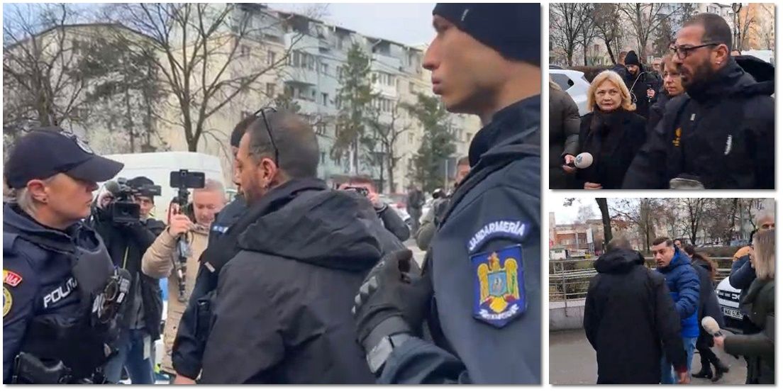 Jurnaliștii prezenți au sunat la 112 să ceară ajutorul Poliției, pentru ca nu cumva situația să escaladeze.
