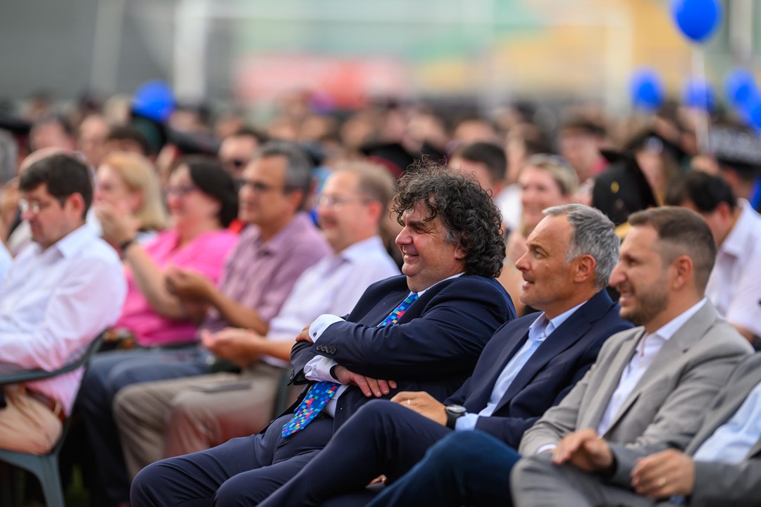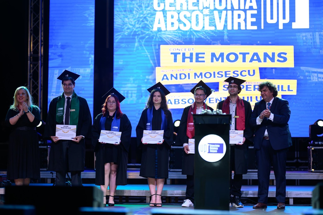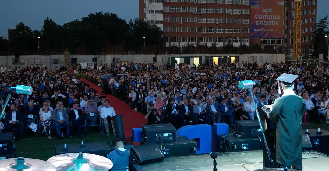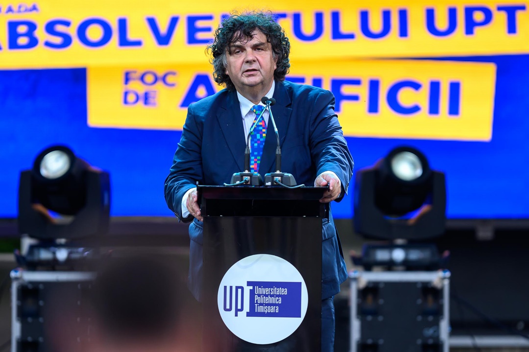 Paul Stiegelbauer, reprezentantul studenților în Consiliul de Administrație al UPT, le-a urat proaspeților absolvenți să-și găsească și să-și scrie, fiecare, propria poveste, iar președintele Senatului UPT, conf.univ.dr. Liviu Cădariu-Brăiloiu, le-a cerut absolvenților să se ridice în picioare și să-i aplaude pe părinți și pe profesori.