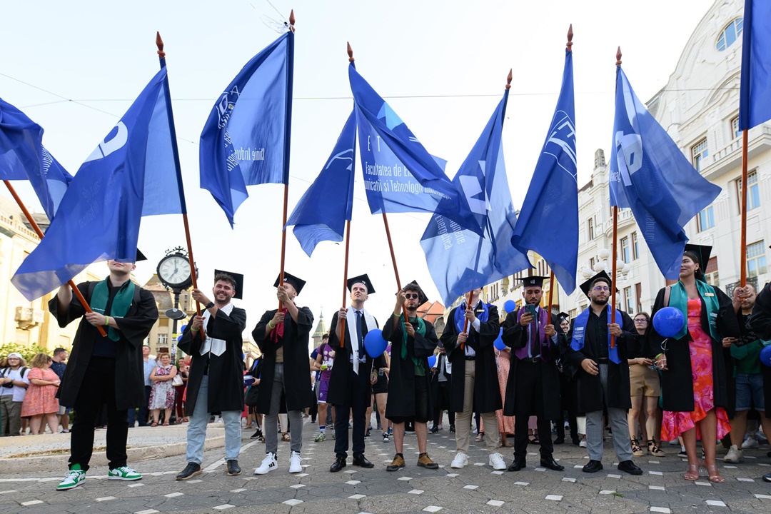 Evenimentul a început, în data de 30 iunie 2024, în Piața Victoriei, pe platoul din fața Rectoratului UPT, unde peste 1.000 de absolvenți, îmbrăcați în robe, însoțiți de părinți și prieteni, s-au reunit pentru deja tradiționala Paradă a Absolvenților. Coloana, acompaniată de formația SuperChill, s-a îndreptat, sub privirile curioase ale trecătorilor, spre Stadionul Știința, locul de desfășurare al ceremoniei, moderată anul acesta de cunoscutul Andi Moisescu.