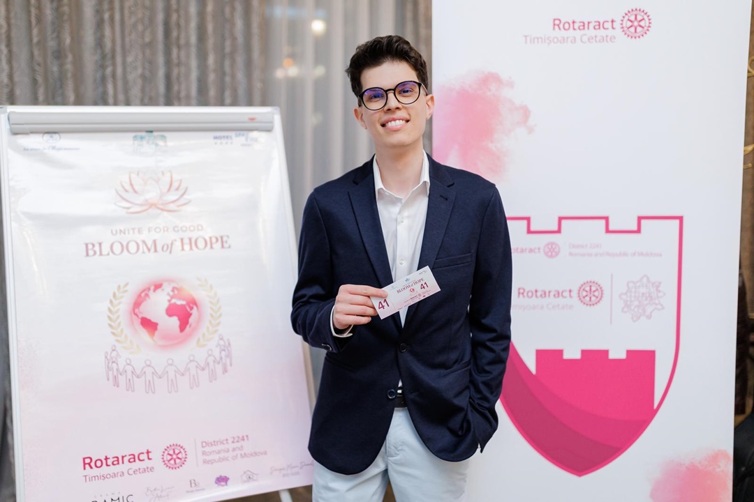 Dornic să ajute, tânărul de numai 19 ani și-a mobilizat prietenii și colegii de la Clubul Rotaract Timișoara Cetate și a organizat un eveniment caritabil – „Bloom of Hope”.