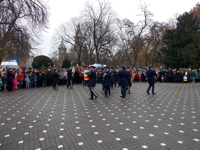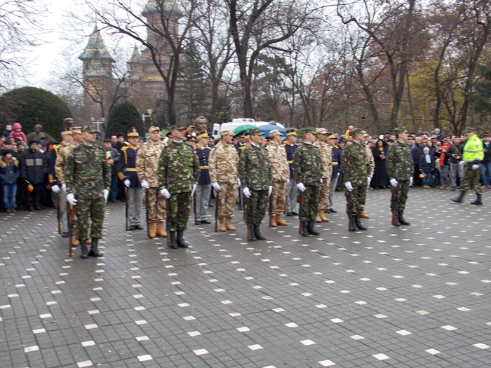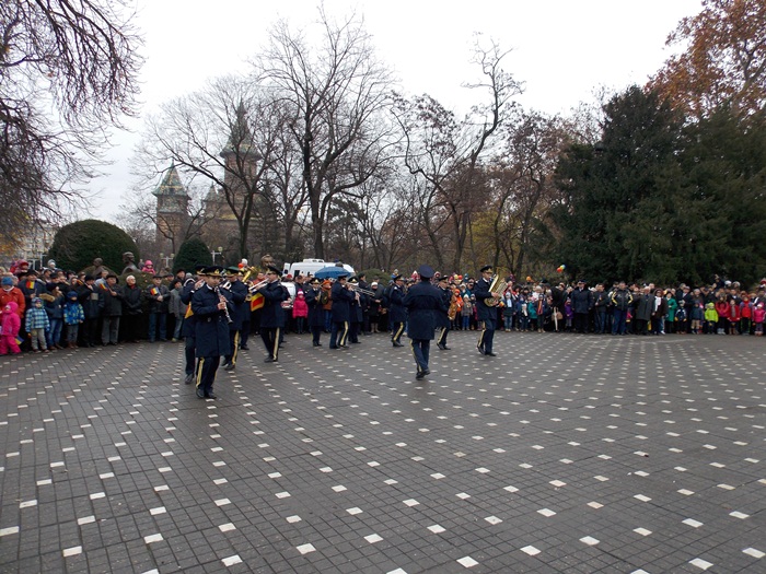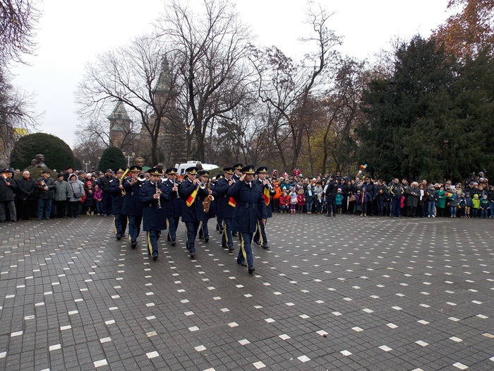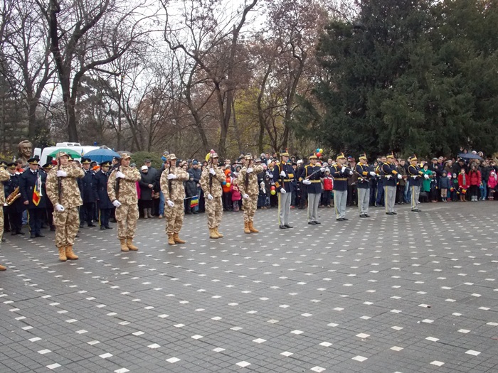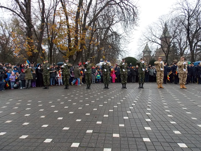 In prezenta IPS Ioan Selejan, Mitropolitul Banatului, reprezentantii autoritatilor locale au depus coroanele de flori, apoi militarii Brigazii 18 Infanterie Banat au facut o demonstratie de manuire a armei, acompaniati de muzica fanfarei. De asemenea, ansamblul profesionist Banatul a oferit publicului un scurt program artistic.