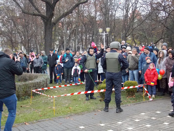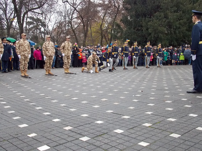 Oamenii au urmarit ceremonialul, iar copiii au fost fascinati de exercitiile demonstrative organizate langa Monumentul Ostasului Necunoscut.