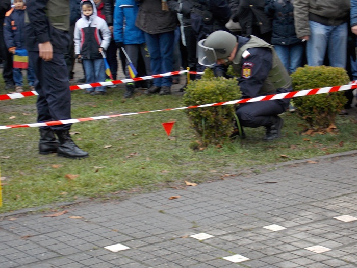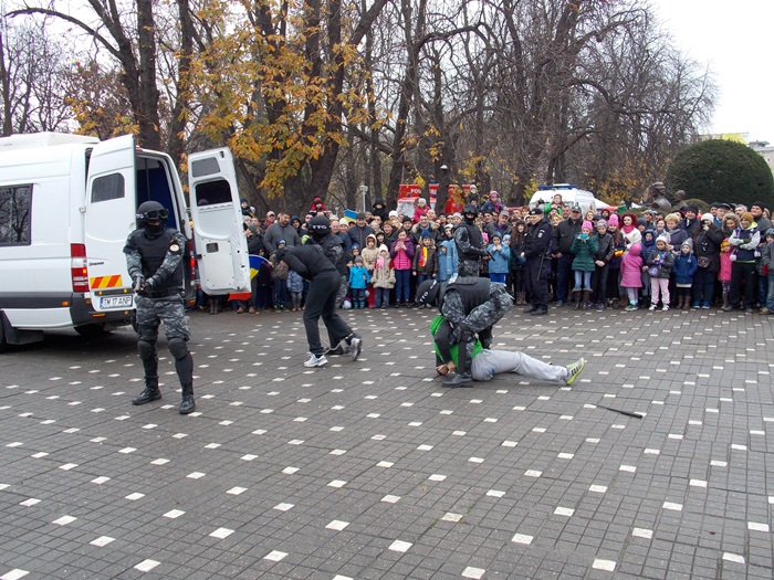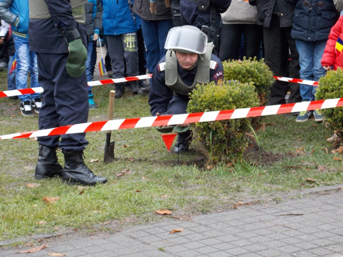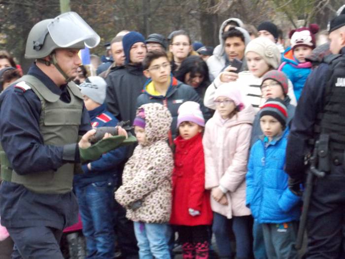 Piticii au trecut pe la cercetasi si au vazut cum se pegateste o masa in aer liber, au urcat in masinile de interventie sau pe mopedele politiei. Fascinati au fost insa sa puna mana pe armele folosite in actiune, pe binocluri sau sa vada aruncatoarele de grenade sau lansatoarele de rachete. Unii dintre ei chiar au probat echipamentele de protectie si le-au recunoscut pe unele dintre arme, din jocurile video.
