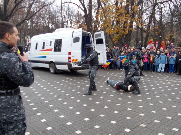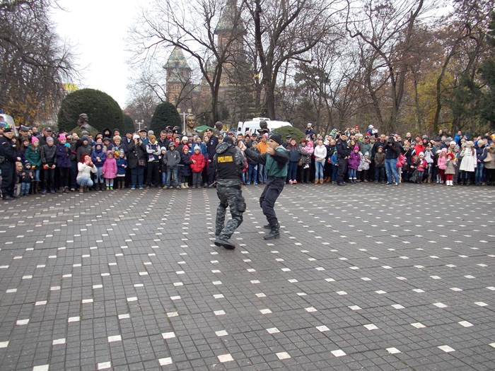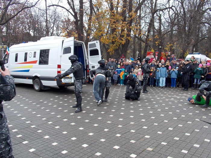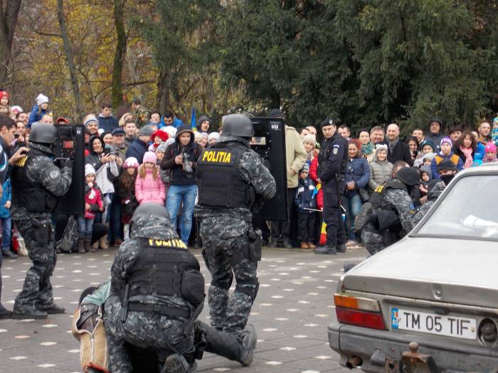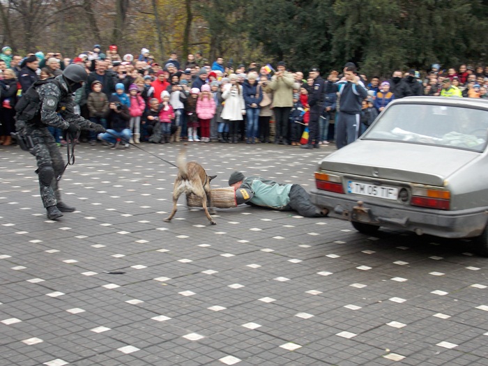 Au urmat demonstratiile facute de reprezentantii ISU Banat, Inspectoratul de Jandarmi, Serviciul de Interventii Speciale si de angajatii penitenciarului din Timisoara. In centrul atentiei s-au aflat si cainii special antrenati sa depisteze stupefiante, explozibili sau telefoane.
