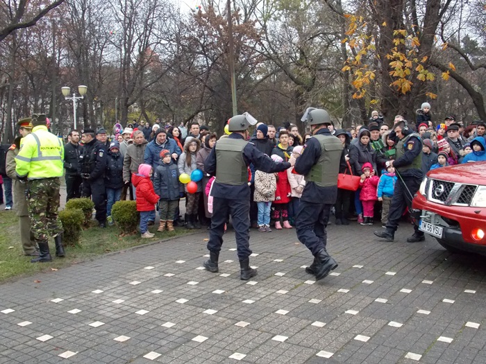 Prichindeii prezenti in Parcul Central la evenimentul de Ziua Nationala au fost foarte incantati de exercitii, insa s-au bucurat si de standurile de prezentare ale militarilor sau politistilor.
