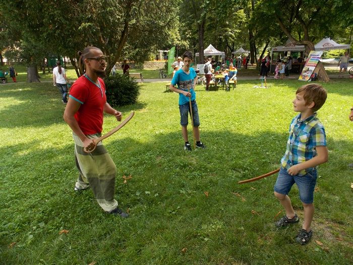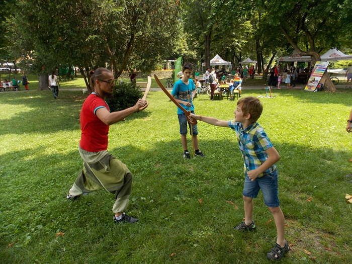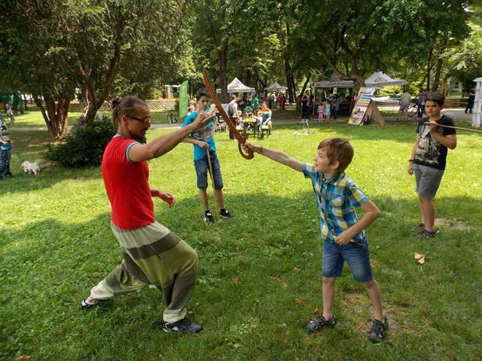 TIMISOARA. A doua zi a festivalului Street Delivery a adus in Parcul Poporului o multime de copii de toate varstele. Piticii au fost incantati de oferta organizatorilor si au participat la tot felul de ateliere, au pictat pe foi sau diferite materiale, au pedalat sau au invatat sa lupte cu sabia.