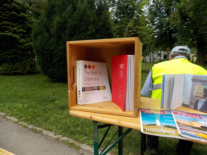 Pe aleile din centrul parcului au fost amenajate standuri.