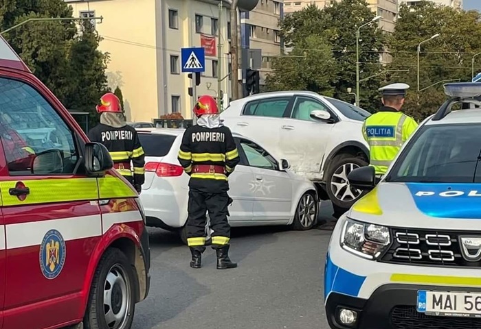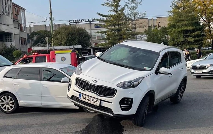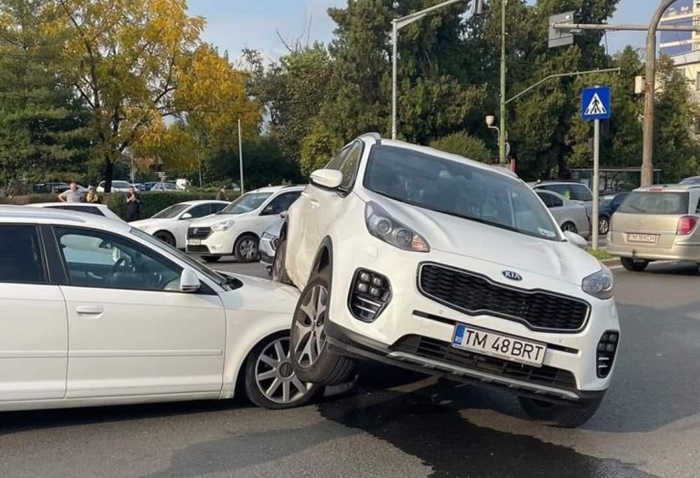 Una dintre conducatoarele auto, cu un SUV Kia, care a virat la stanga, ca sa o ia pe langa sediul Politiei Judetene Timis, nu a fost atenta si nu a acordat prioritate celeialte soferite, care mergea pe Take Ionescu spre Lugojului.