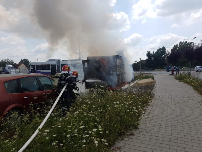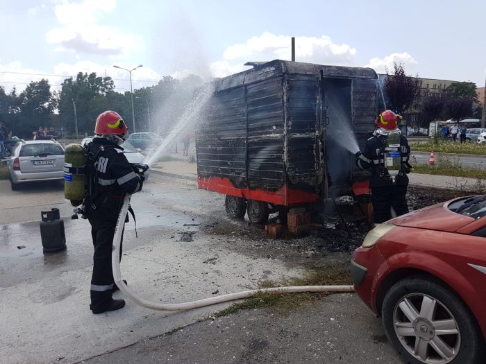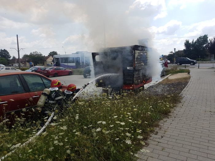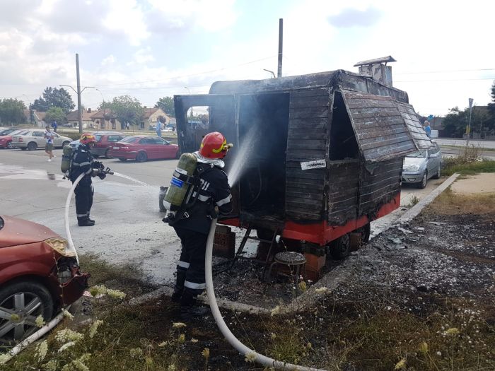 Focul a izbucnit in jurul orei 14.00 si s-a extins cu repeziciune. In doar cateva clipe toneta era ca o torta, iar focul a afectat si o masina parcata in imediata vecinatate.