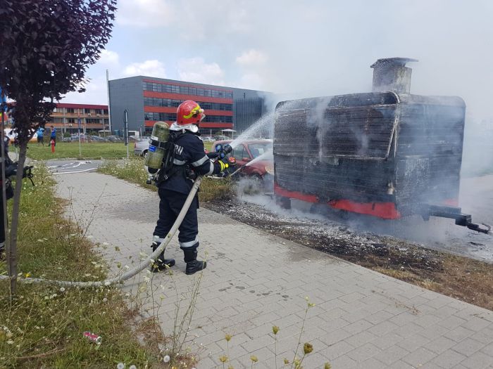 Pompierii au intervenit pentru a stinge flacarile cu o autospeciala cu apa si spuma, un ofiter si 5 subofiteri.