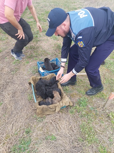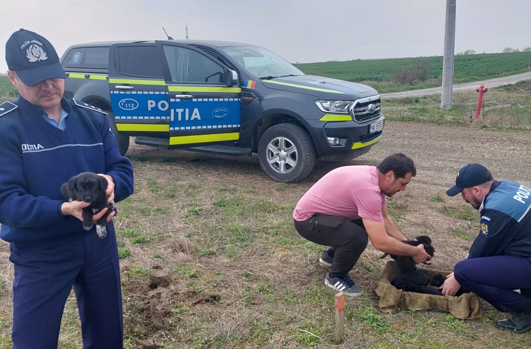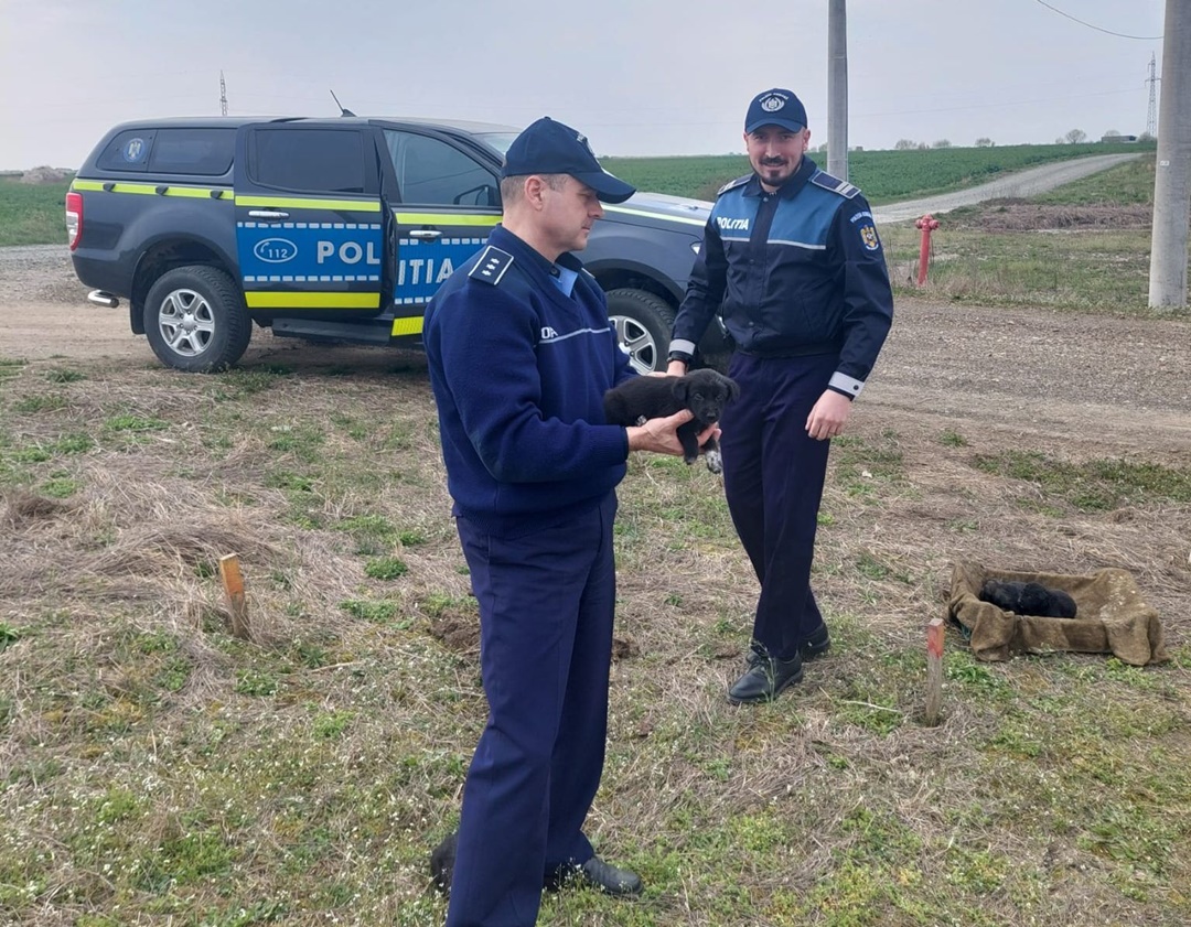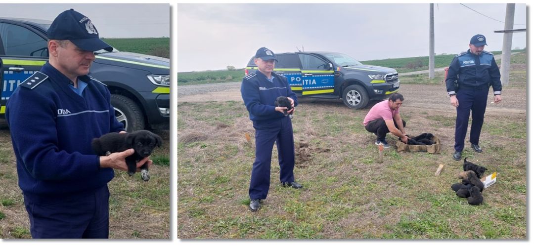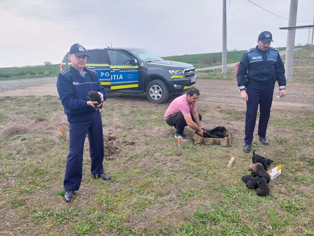“Datorita eforturilor si implicarii politistilor din cadrul Inspectoratului de Politie Judetean Timis – Biroul pentru Protectia Animalelor, in colaborare cu cetatenii iubitori de animale, au fost salvati 14 catelusi abandonati in camp in zona limitrofa a localitatii Sacalaz.