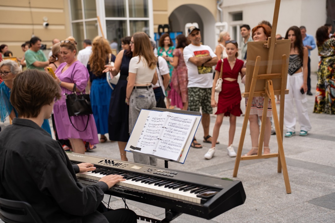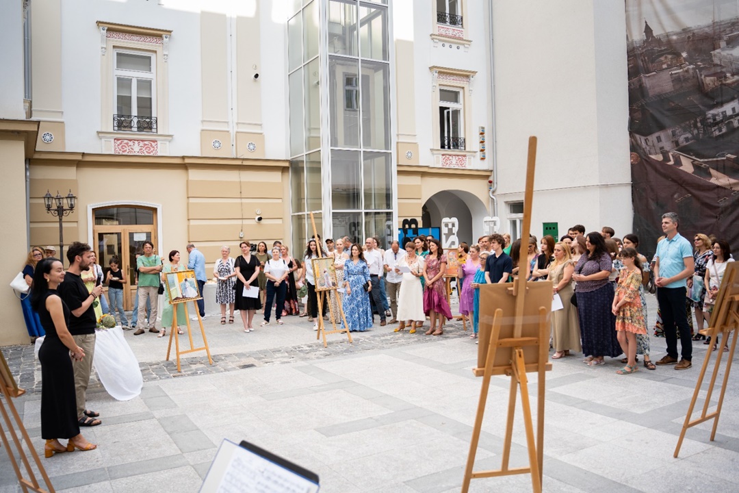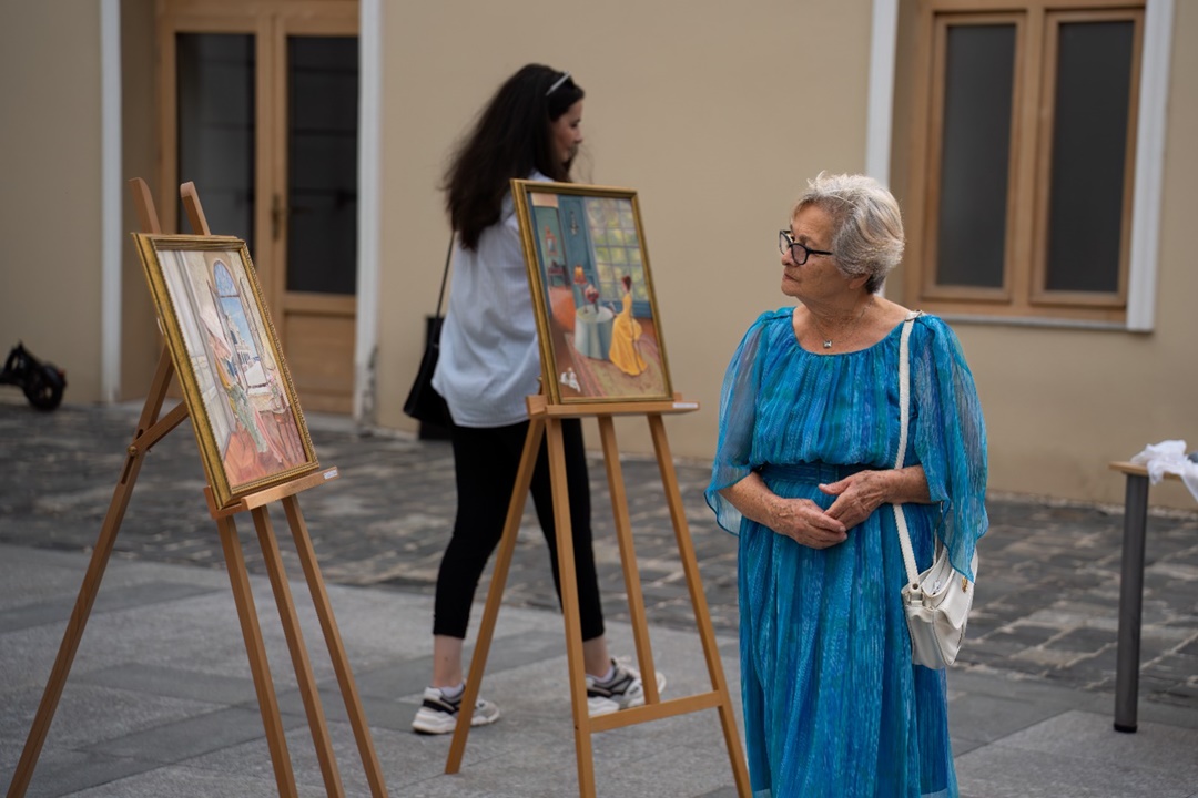 Privitorii au avut ocazia sa se ‘infrupte’ din bogatia vizuala si sa se lase purtati de povestea fiecarui tablou expus. Evenimentul, care a avut loc in curtea Centrului de Proiecte din Timisoara, a oferit vizitatorilor o atmosfera speciala si intima, in care sa se bucure de operele de arta expuse, cu muzica live asigurata de tanarul pianist Lucas Kohl si diferite delicatese.