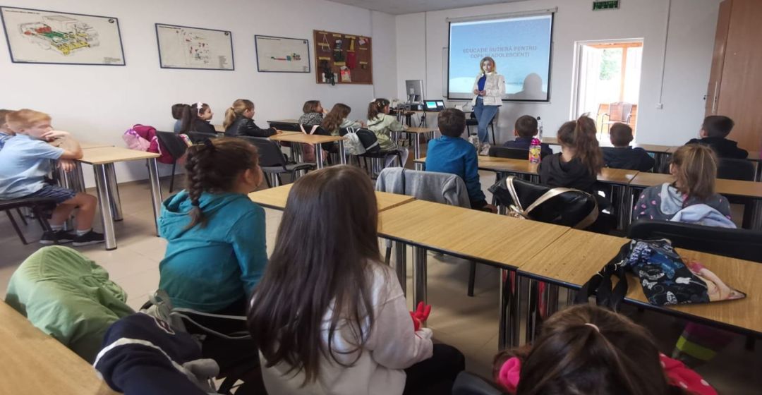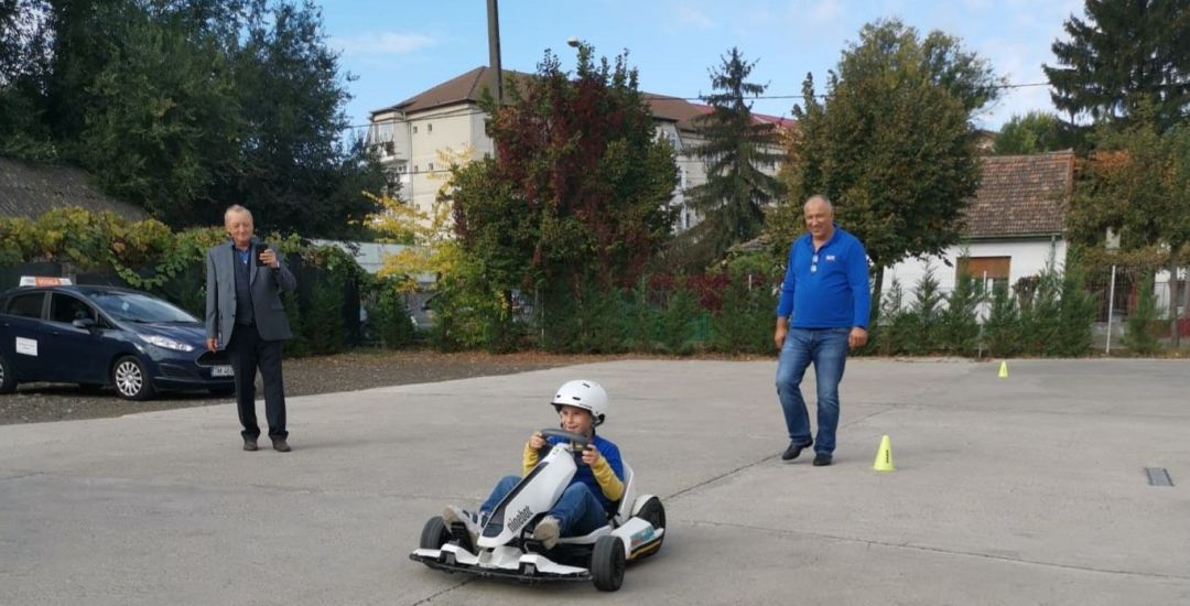 Fiind mici, in varsta de 7-8 ani, nu ii puteam tine prea mult timp cu teoria, asa ca am imbinat-o perfect cu joaca. Noi am fost incantati de vizita lor si ei de surprizele noastre“, a declarat Dorina Hutan Jurca, coordonator al Scolii de Soferi Blitz Timisoara.