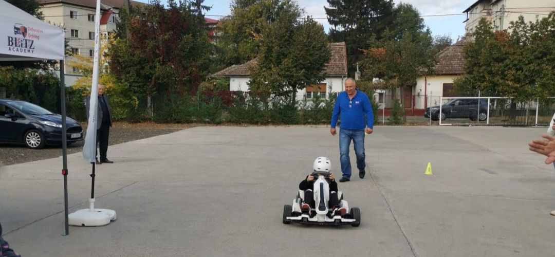 “A fost o zi foarte frumoasa la Academia Blitz. Am avut oaspeti de seama, o multime de prichindei, carora le-am predat o lectie de educatie rutiera, iar apoi le-am oferit si momente de distractie. Elevii au putut vedea la noi, la Scoala de Soferi Blitz, o masina de Politie Rutiera, apoi autovehiculele pe care invata candidatii pentru permisul de conducere, dar si doua karturi electrice, pe care ni le-au asigurat cei de la Clubul Sportiv din Dumbravita. Copiii s-au urcat in karturi, le-am pozitionat jaloane si le-am realizat un traseu prin curtea noastra, astfel ca i-am transformat pentru cateva ore in soferi, iar asta i-a bucurat foarte mult.
