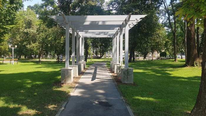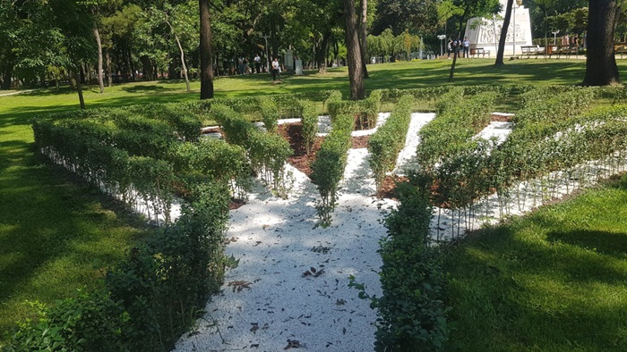 Parcul a fost amenajat dupa modelul gradinilor vieneze, are alei noi, foisoare, o harta a cetatii realizata din mozaic, dar si un mini-labirint din gard viu, in forma unei frunze de Ginkgo Biloba. De asemenea, in parc exista un patio spaniol, iar in foisorul montat in mijlocul parcului, oricine doreste poate canta la una dintre cele doua pianine.