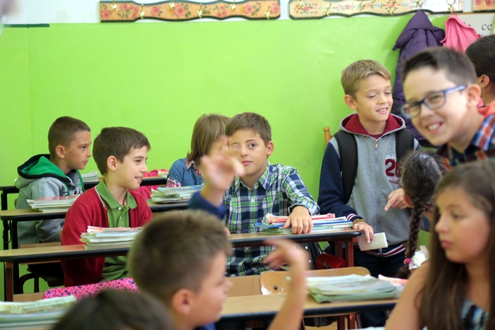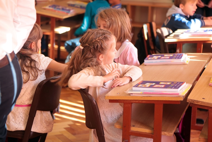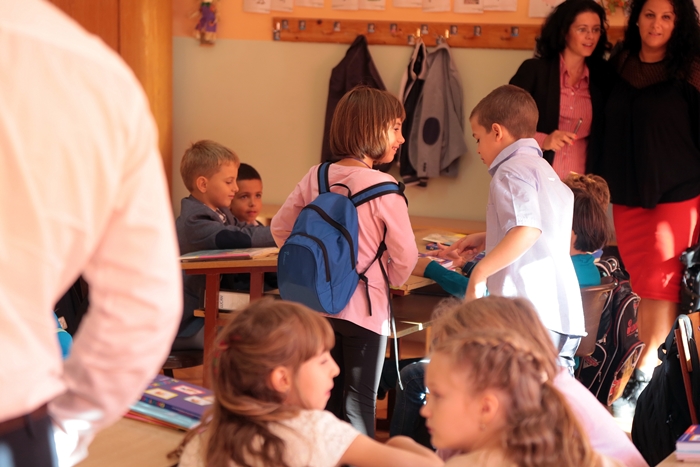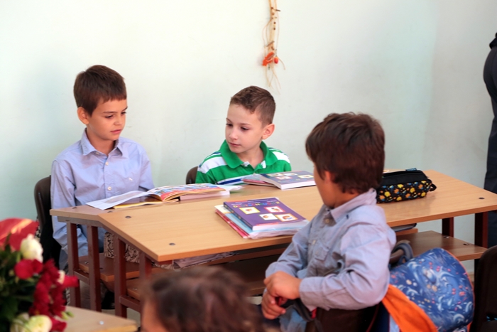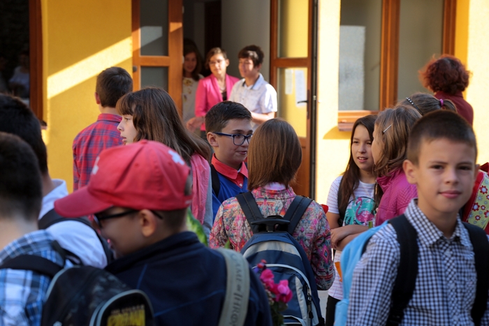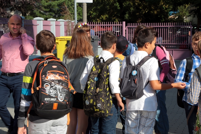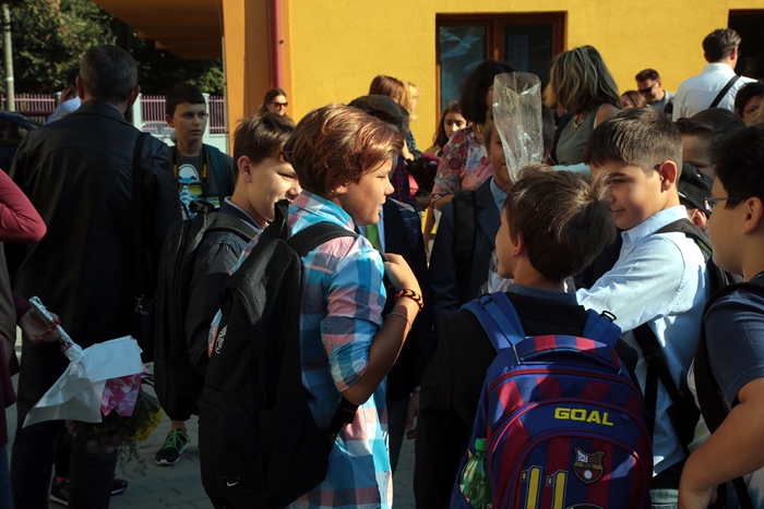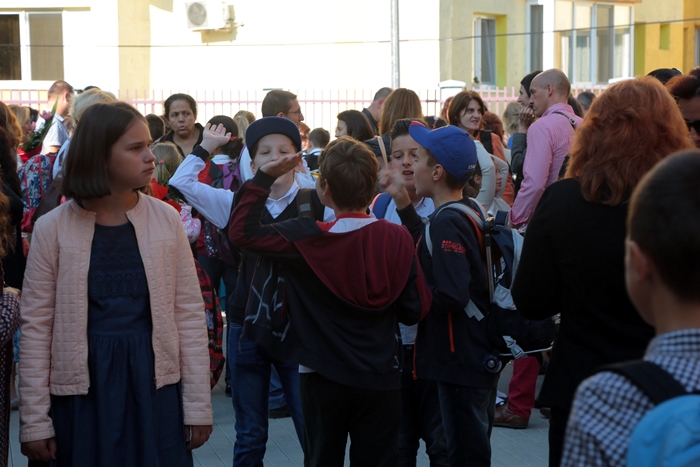 Primii elevi care s-au intors in banci au fost cei care vor studia, anul acesta, in cladirea din Piata Unirii.