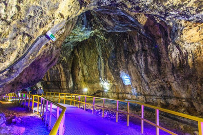 Un loc extrem de racoros, care reprezinta alternativa perfecta pentru cei care vor sa scape de canicula is, in acelasi timp, sa aiba parte de aventura. Pestera Ialomitei – “Ialomicioarei”, asa cum au botezat-o turistii – este situata pe versantul drept al Cheilor Ialomitei, in localitatea Moroeni din judetul Dambovita, la o altitudine de 1.530 de metri. Peste 6 milioane de lei, majoritatea fonduri europene, au fost investite in pasarele noi, sisteme de iluminat si sonorizare.