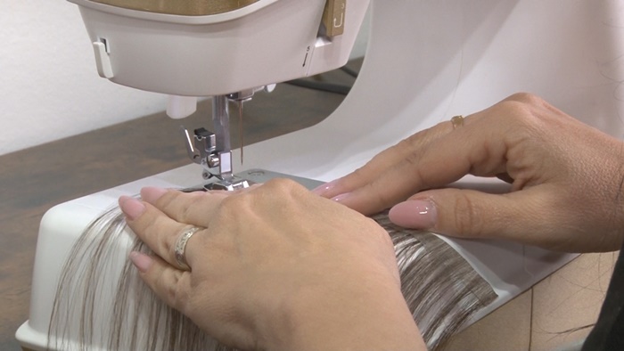 Extenssionista ofera si consiliere pentru clientele care vor sa isi puna extensii de par.