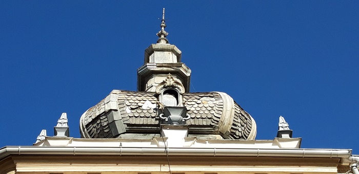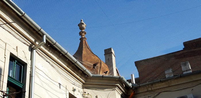 ”Turnul cladirii face parte din cea de-a doua etapa de restaurare a acoperisului. Acoperisul este din tabla de zinc, iar turnul are solzi din ardezie, o piatra mai pretentioasa care se sparge in fasii. Urmeaza sa analizam si sa stabilim daca ramanem pe varianta ardezie sau facem o schimbare la turn”, a mai spus Susaru.