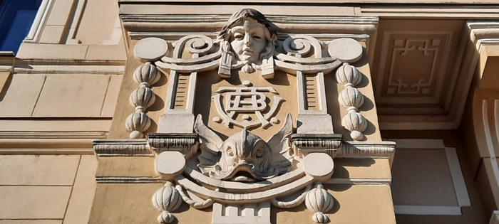 Initial cladirea avea un singur etaj si era construita in stilul seccesion, fiind impodobita cu motive vegetale, geometrice si cu pesti, ultimele elemente facand trimitere si la destinatia cladirii. Constructia imobilului avea sa se incheie in 1902.