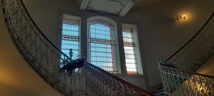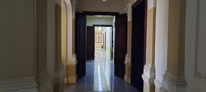 In interior a fost inlocuita tamplaria degradata: usi si ferestre, dusumele si lambriuri. S-au refacut pardoselile de mozaic si tencuielile, precum si elementele de rezistenta cu probleme, de exemplu unele bolti. S-au refacut retelele electrice si de apa–canalizare, iar in camere s-au montat instalatii de incalzire si climatizare. Spre curte s-a construit o noua casa a scarii, dotată cu lift.