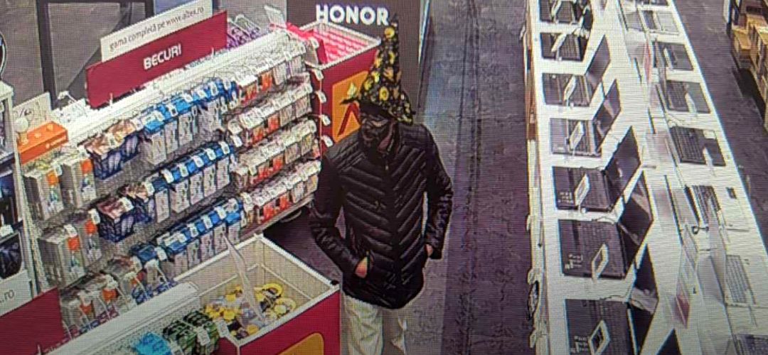 Totul s-a petrecut într-un magazin din Lugoj. Bărbatul a intrat aseară deghizat în vrăjitoare, cu mască și pălărie țuguiată, s-a plimbat printre rafturi și a urmărit activitatea angajaților. Într-un moment în care aceștia erau ocupați, a tăiat alarma unui laptop, l-a înșfăcat și s-a făcut nevăzut.