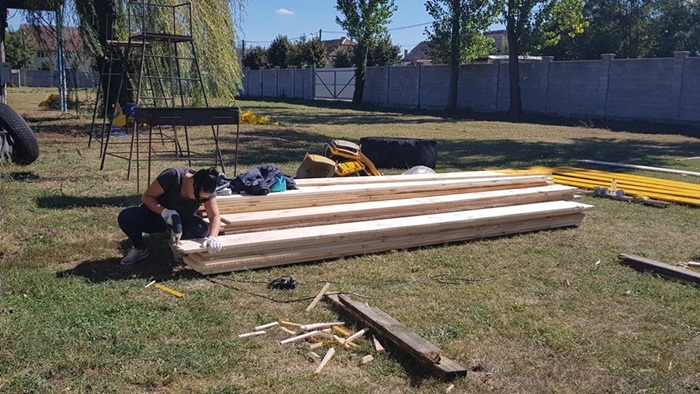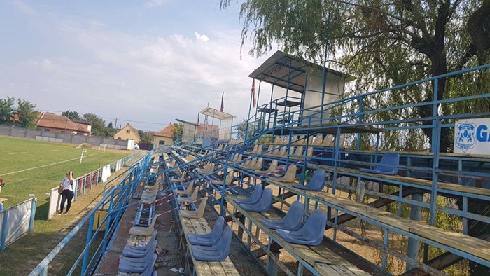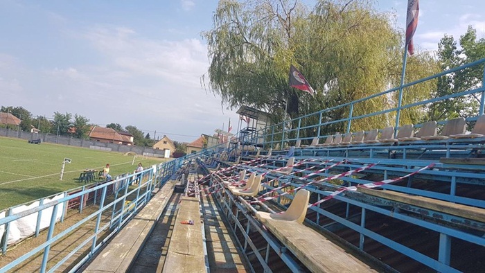 Fanii au demontat vechile scaune din plastice, au revopsit tribuna metalica, au pus bancute de lemn, dar au refacut si cabinele existente in partea superioara a tribunei. In ajutorul suporterilor a venit si o firma din Timisoara.