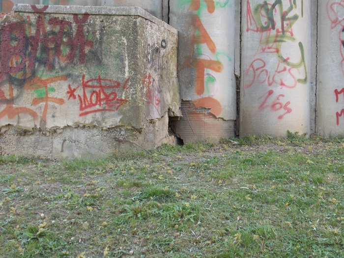 Usile din tabla au fost pictate in tot felul de culori de artistii cu graffiti, unele geamuri sunt sparte, iar in interior se vad peretii scorojiti, si diferite resturi aruncate la intamplare.