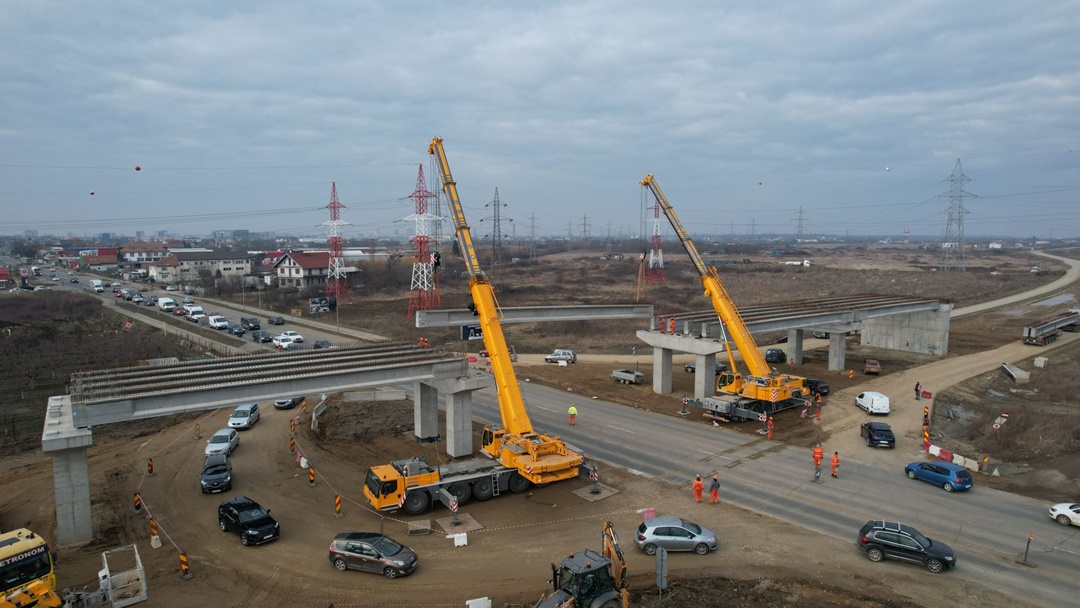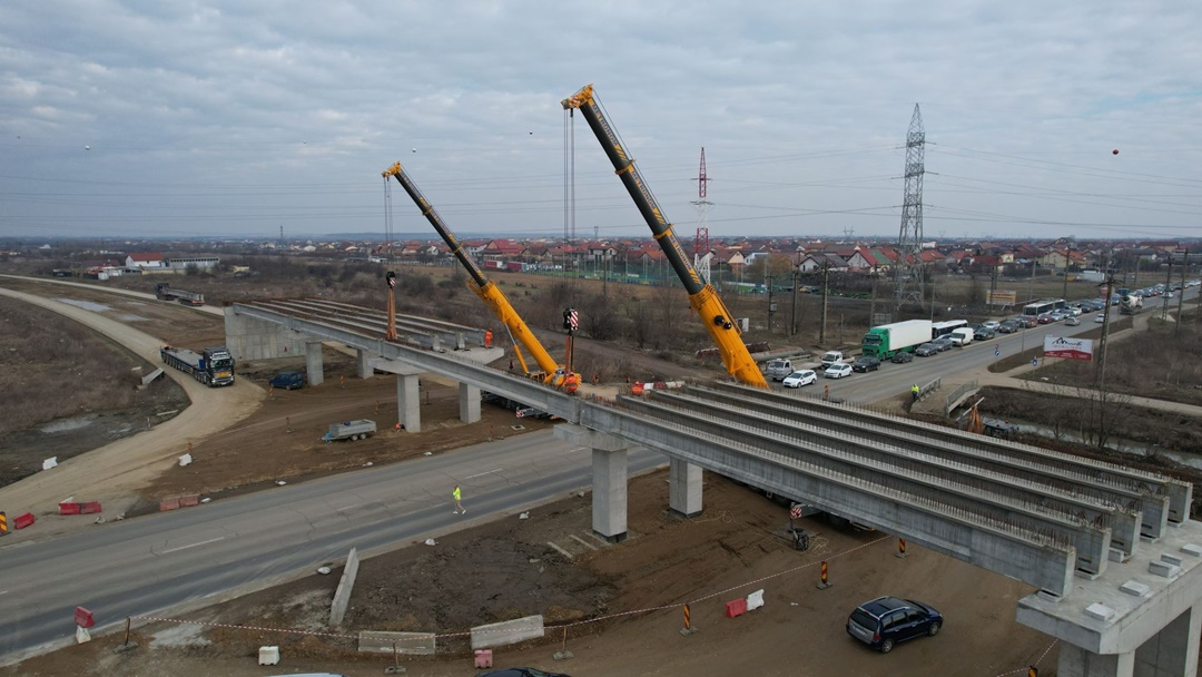 🌉 Cateva dintre lucrarile importante au fost la structuri, la podul si la pasajele de pe traseu. La pasajul care va trece peste drumul judetean Timisoara – Mosnita Noua a fost finalizata montarea grinzilor peste deschiderea principala, cea peste drumul judetean. A fost activitate zilnic si la podul peste Bega din Ghiroda, la pasajele peste calea ferata din Mosnita Noua, Chisoda si Freidorf, la pasajul peste DN 59 Timisoara – Sag